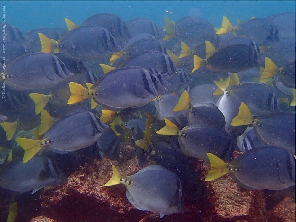Galápagos is not a coral reef snorkeling destination, even though in some locations you will notice recent, but not very colorful hard coral reefs. Hundreds of fish and invertebrate species live in the shallows.