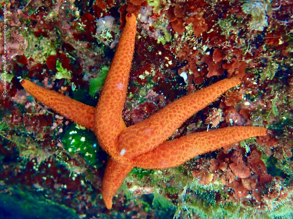 In the rocky areas, you will spot cardinalfish, purple starfish, moray eels, octopus, and sometimes even small dusky groupers. Around are often seen ornate wrasse, rainbow wrasse and several species of seabream.