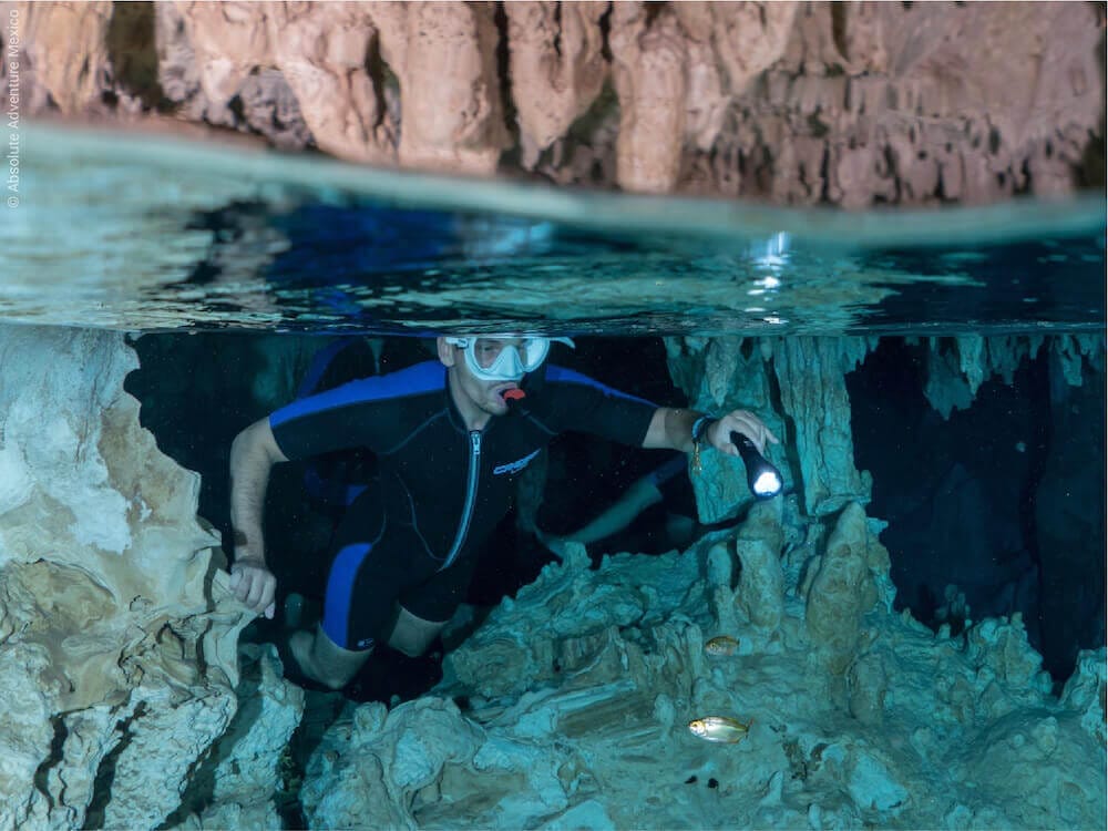 While the reefs of the Mayan Riviera are worth a visit, don’t leave the region without exploring a cenote. These mythical natural water holes, hidden in the jungle and linked to underground caves, are unique snorkeling spots.