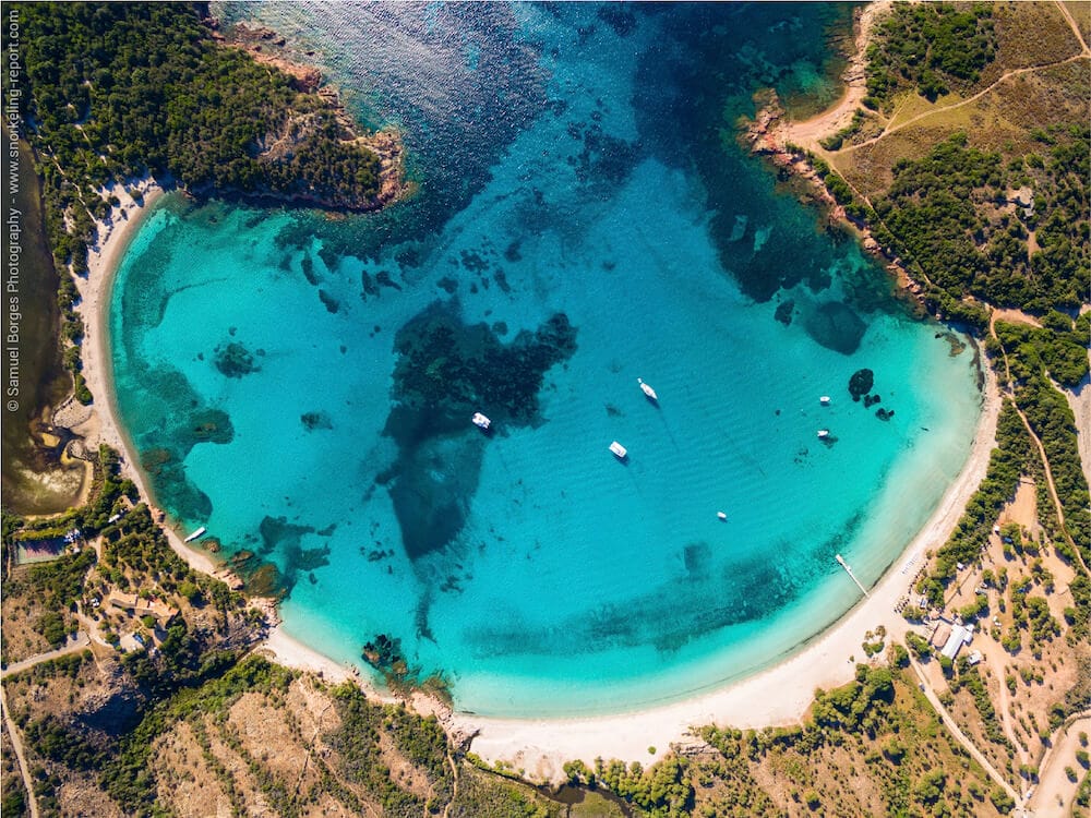 C’est cependant à la pointe nord de la Plage de Palombaggia, protégée par une petite réserve marine, que l’on trouve le meilleur snorkeling de la zone.