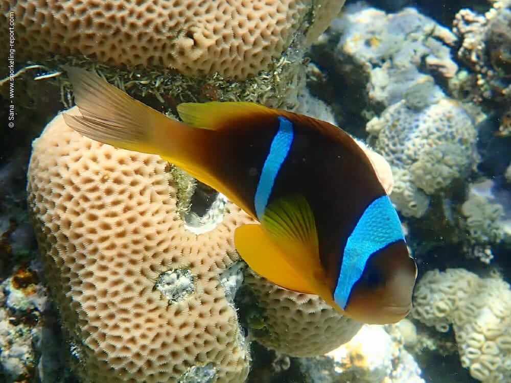 Dans le Parc Marin d’Aqaba, vous pourrez rencontrer sur le récif des poissons-clowns dans leurs anémones, des chirurgiens à queue jaune, des girelles, ainsi que plusieurs espèces de poissons-papillons, comme le papillon orange ou le raton-laveur de Mer Rouge.