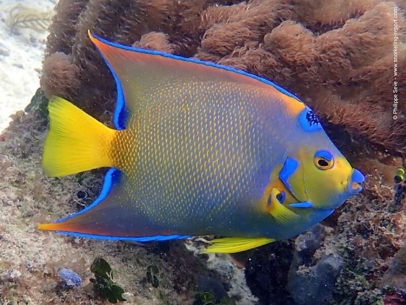 En faisant du palmes-masque-tuba sur la péninsule du Yucatán, vous pourrez notamment voir des poissons-anges français, des poissons-anges royaux, des requins-nourrices, plusieurs espèces de gorettes et de chirurgiens, des poissons-papillons et de nombreuses girelles.