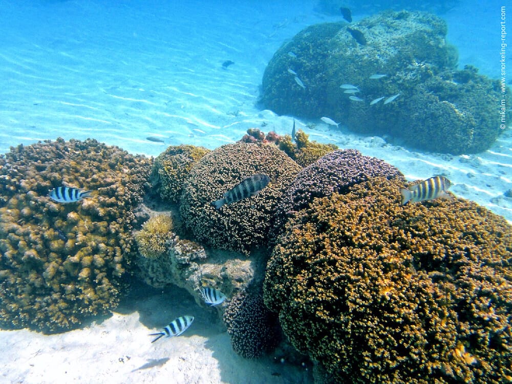 Baies abritées avec poissons colorés et tortues