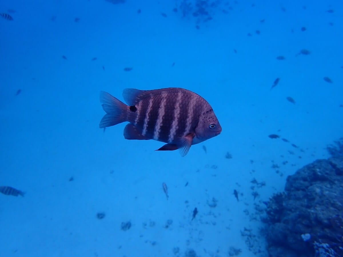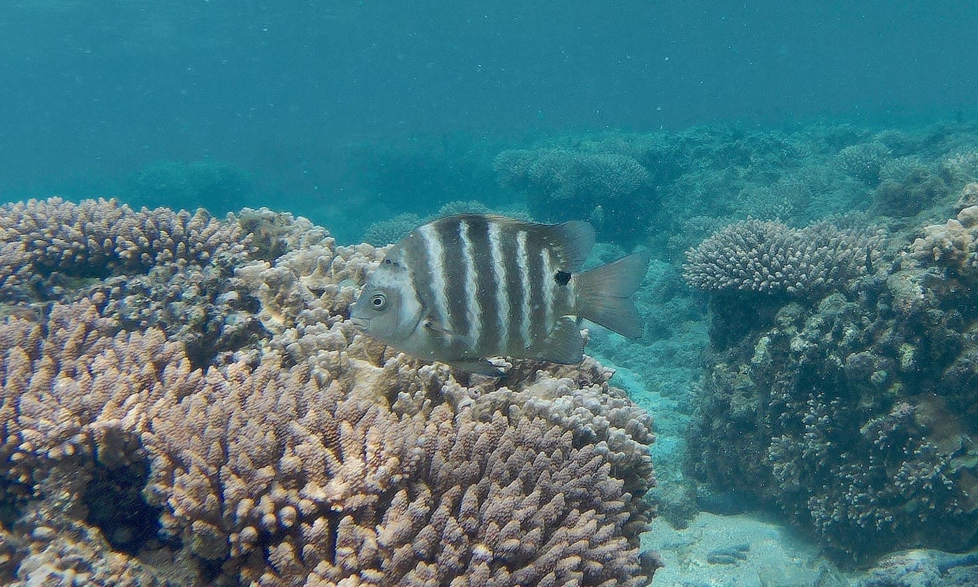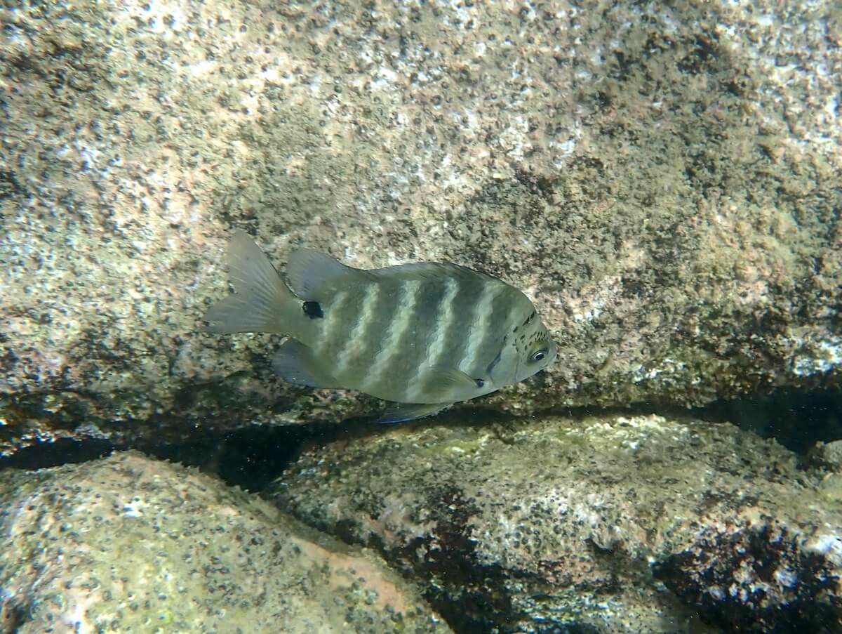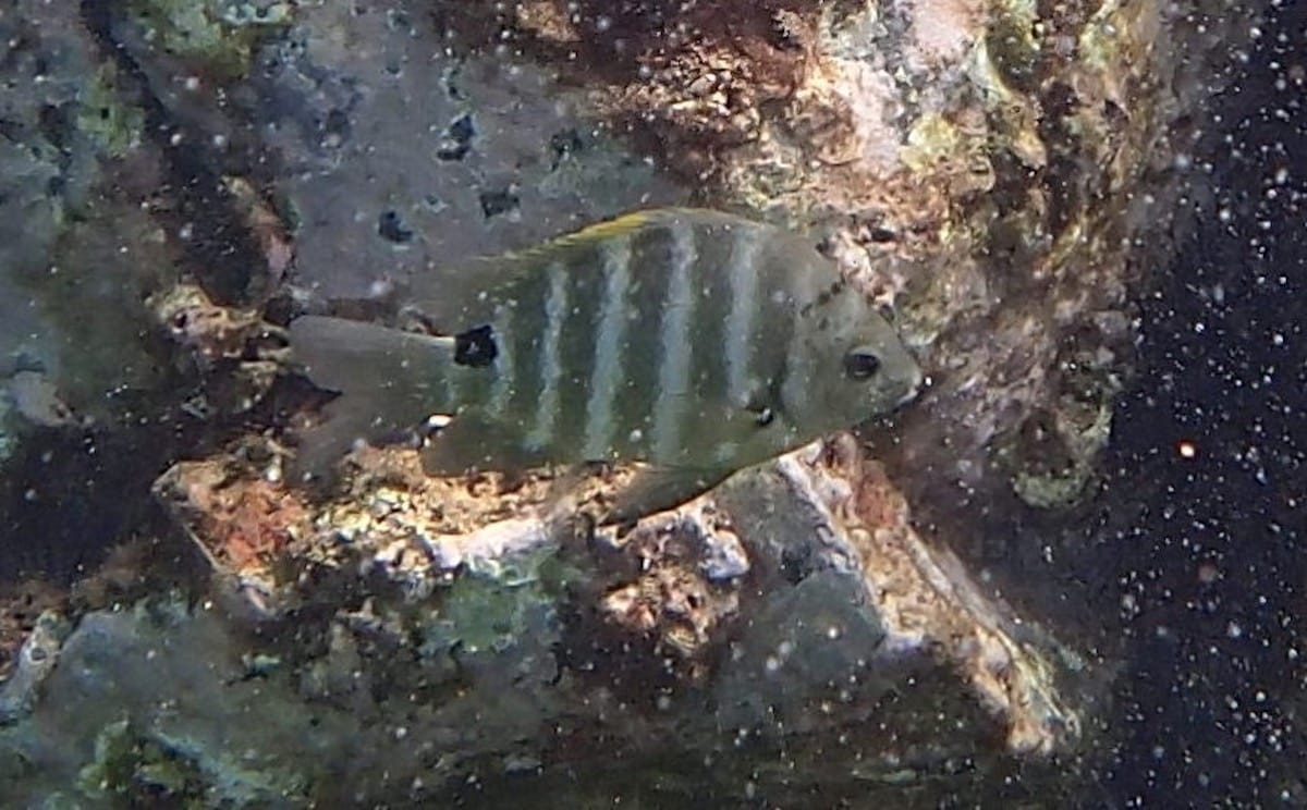 Parfois confondu avec Abudefduf septemfasciatus, qui n’a pas de point noir à la base supérieure de la nageoire caudale.