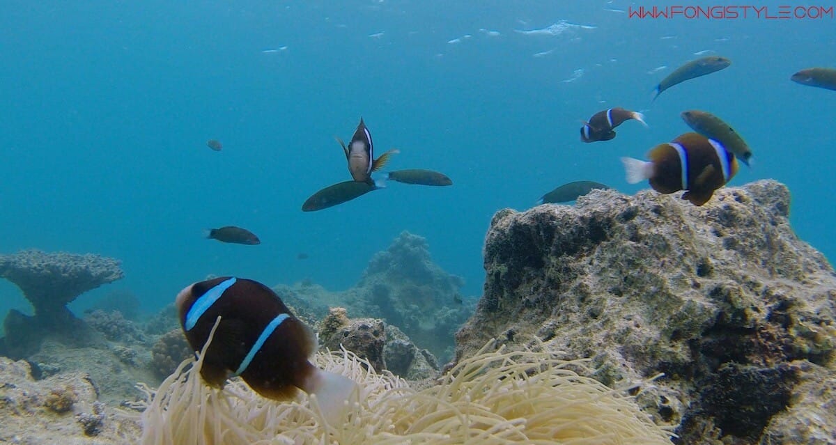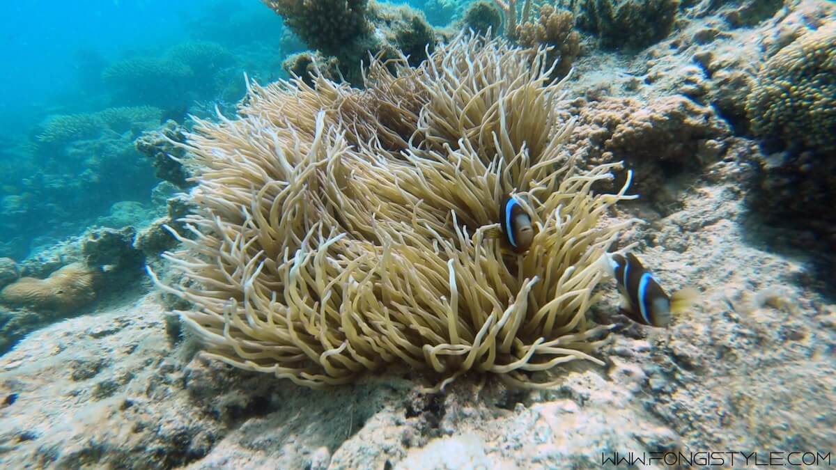 Vit en association avec 6 espèces d’anémones de mer: Entacmaea quadricolor, Heteractis aurora, Heteractis crispa, Heteractis magnifica, Stichodactyla haddoni et Stichodactyla mertensii.