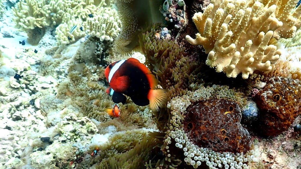 Généralement hébergé en colonies importantes dans les anémones Entacmaea quadricolor, plus occasionnellement par Heteractis crispa et Heteractis magnifica.