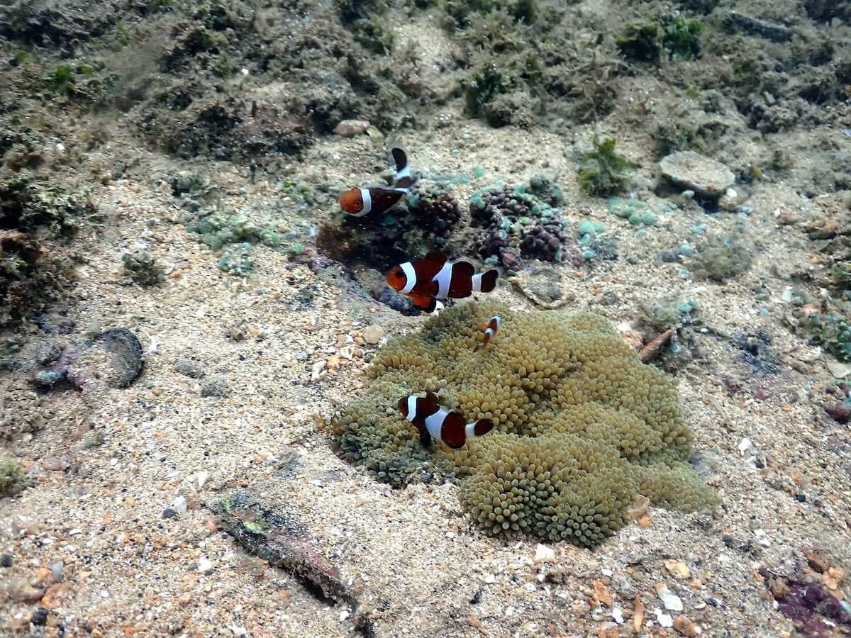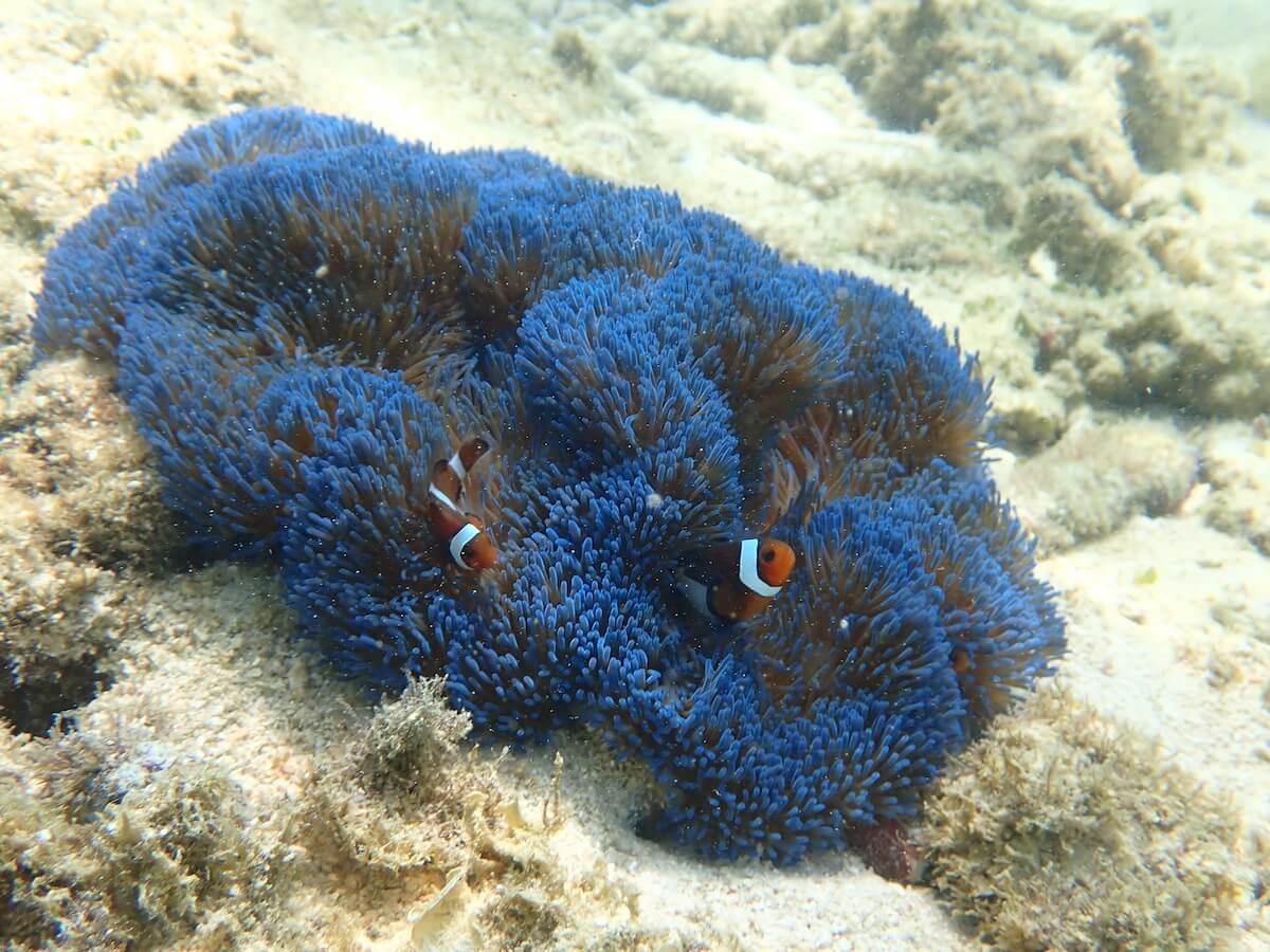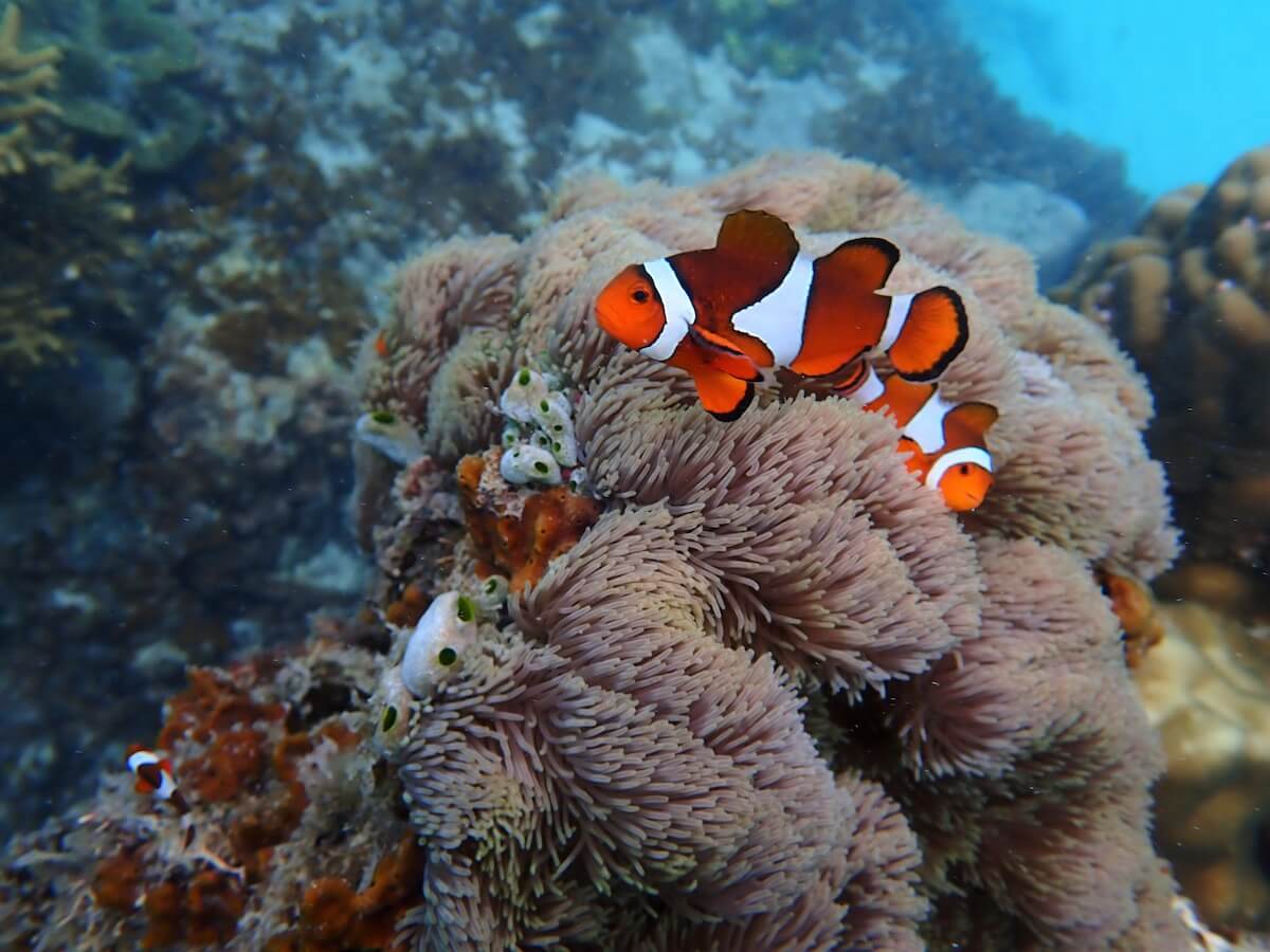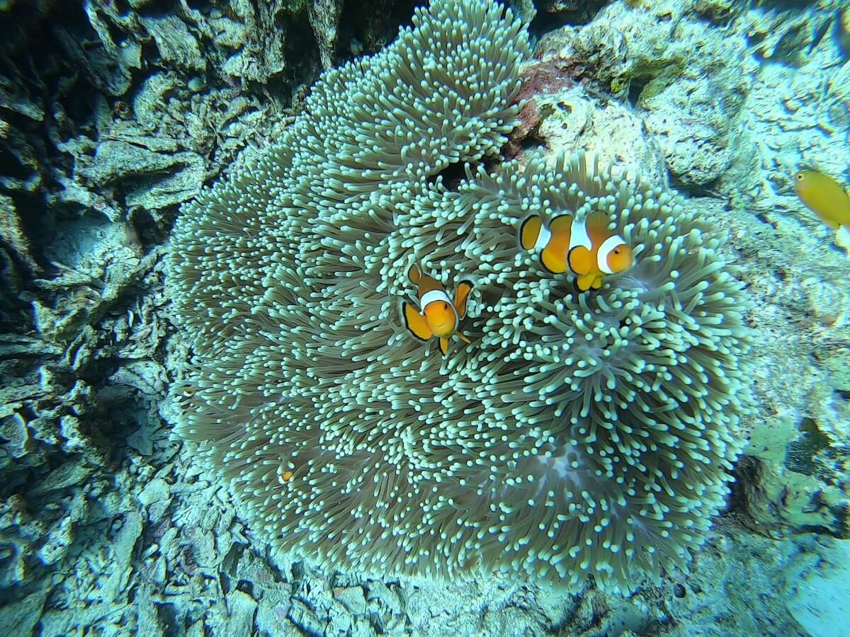 Vit en association avec trois espèces d’anémones: Heteractis magnifica, Stichodactyla gigantea et Stichodactyla mertensii.