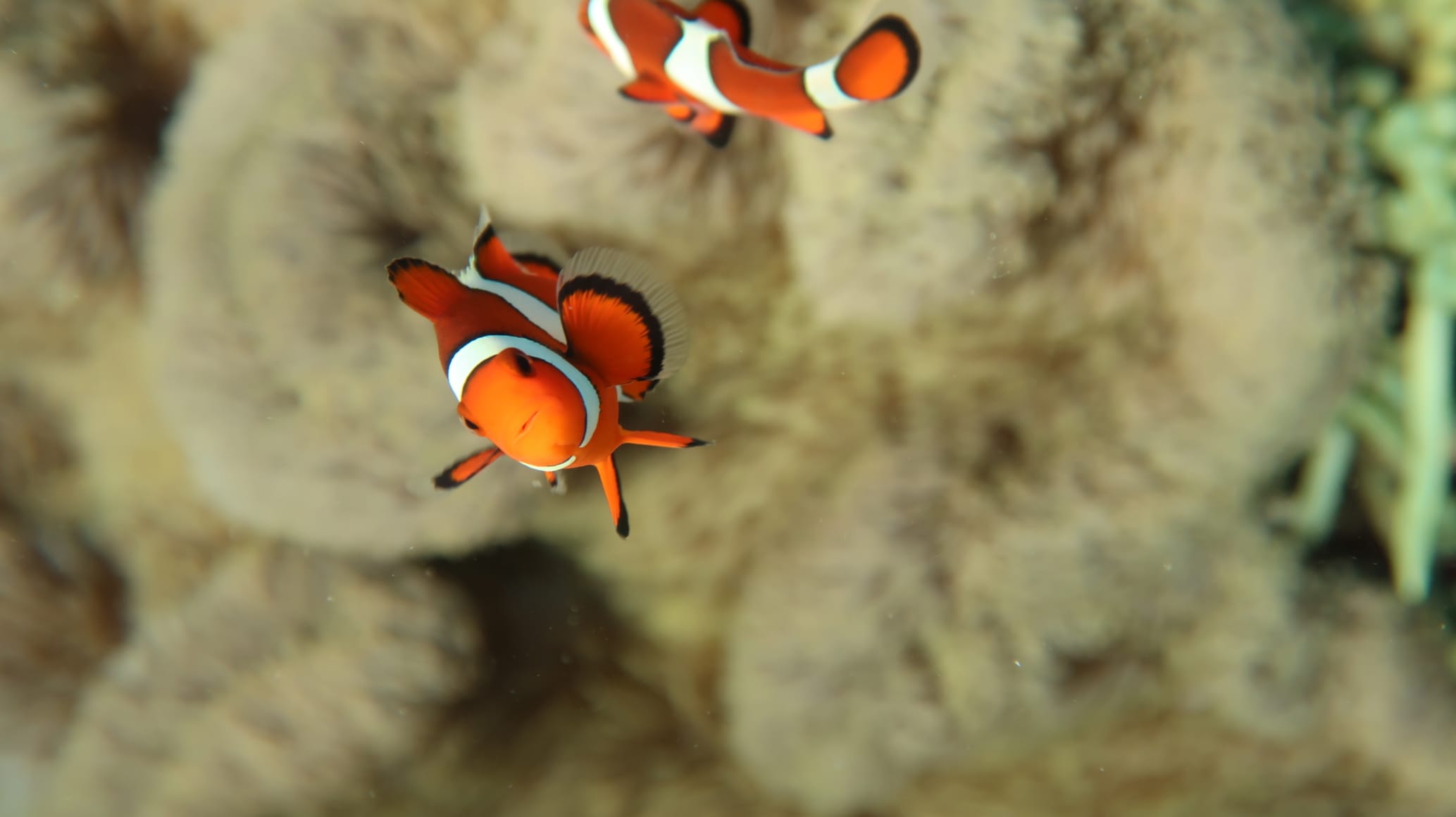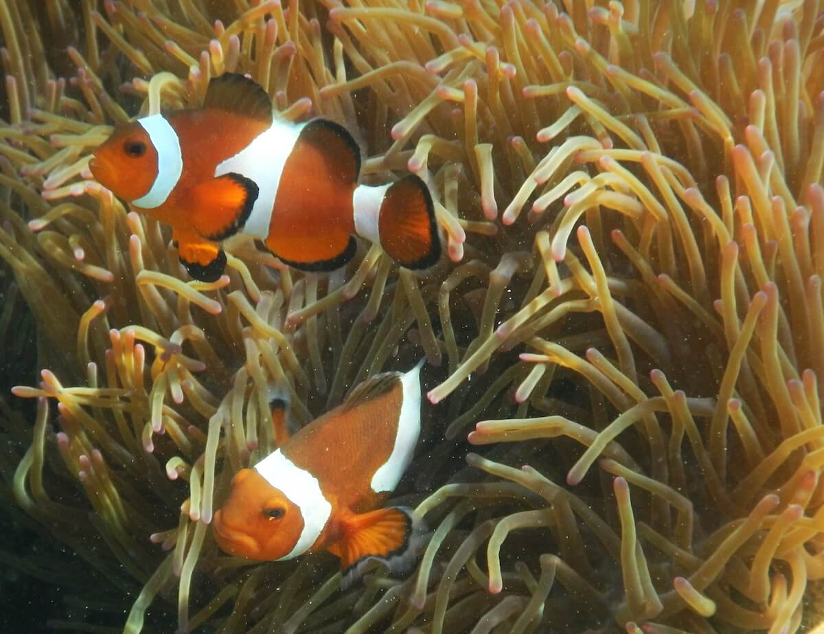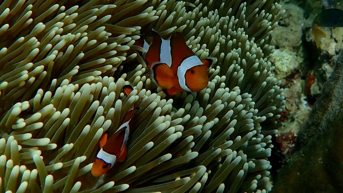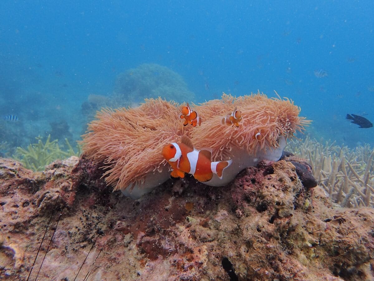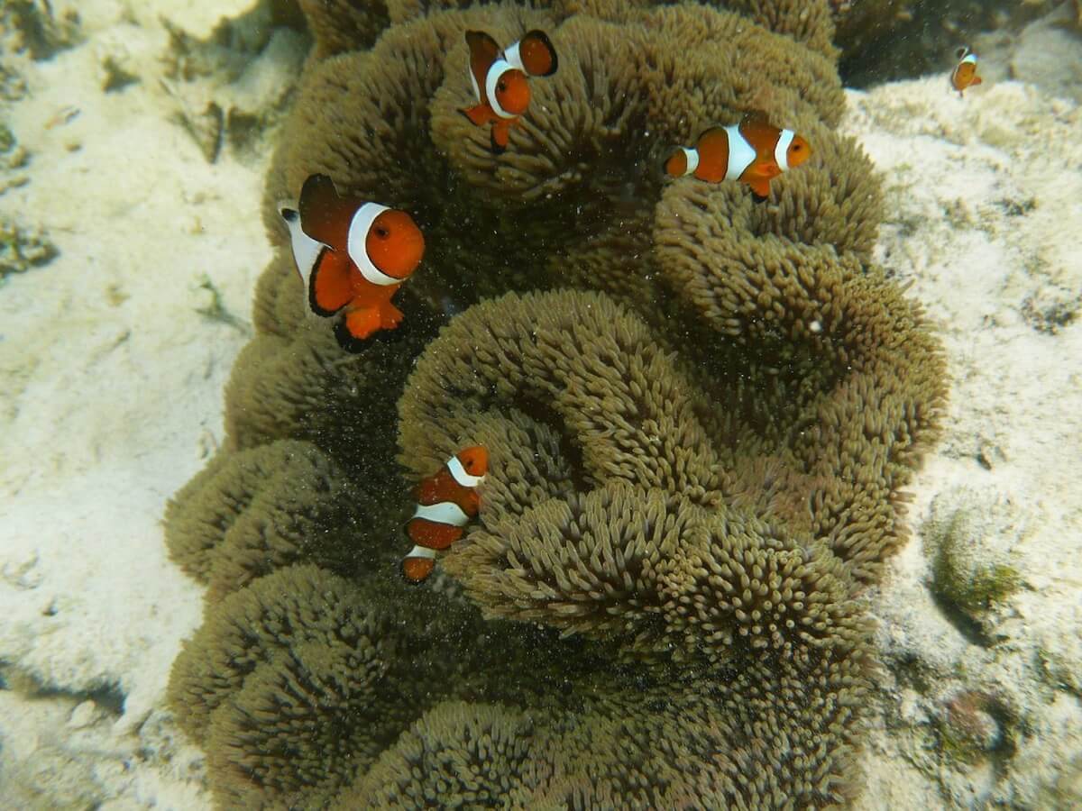 Vit en association avec trois espèces d’anémones: Heteractis magnifica, Stichodactyla gigantea et Stichodactyla mertensii.