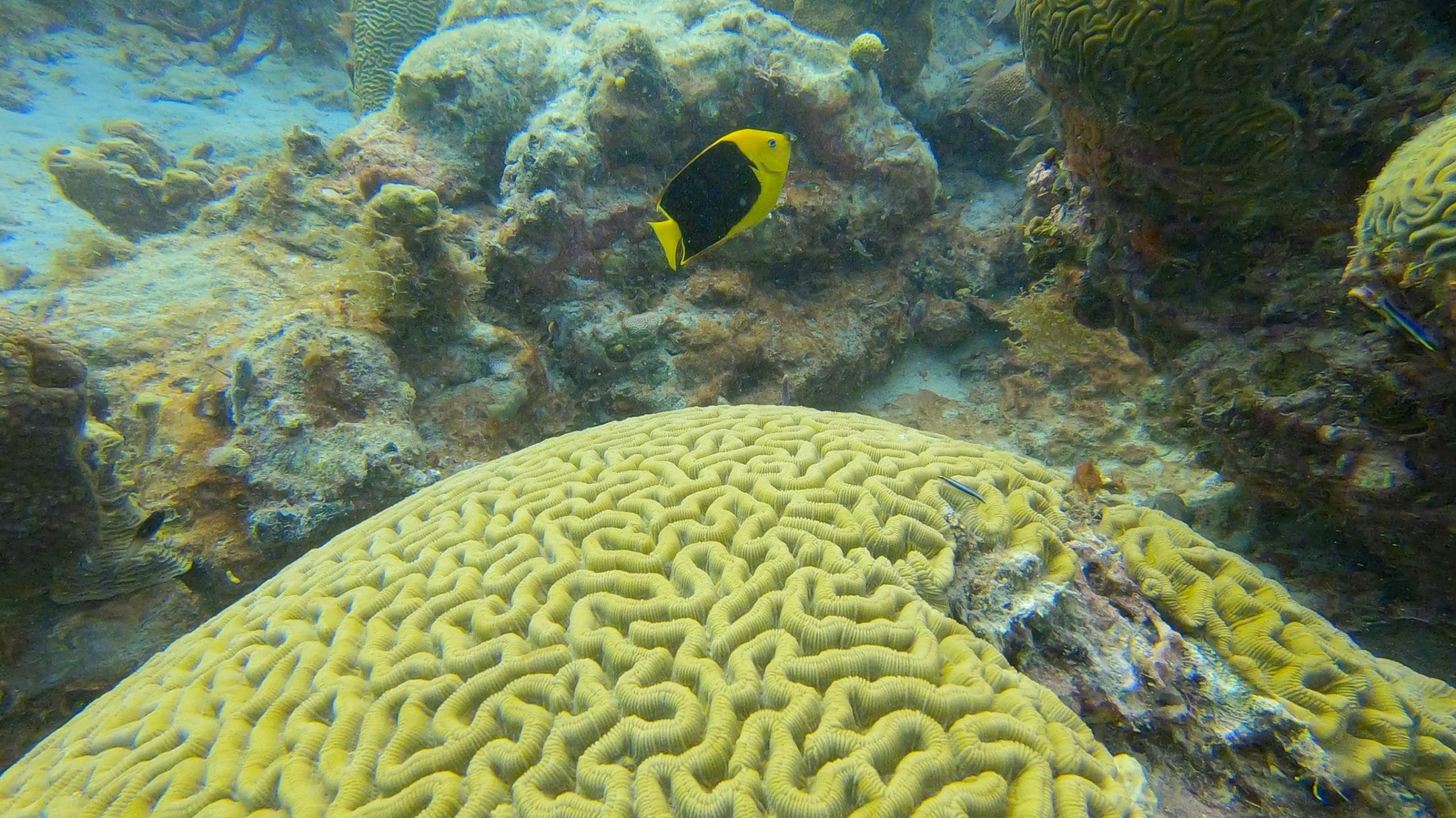 Poisson-ange noir et jaune, ange des Caraïbes, demoiselle beauté