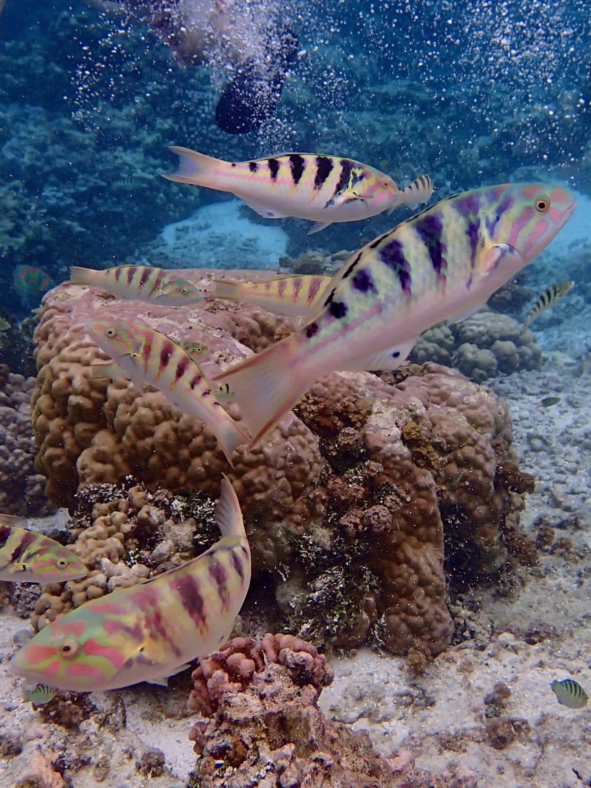 Distribution: de l’Afrique de l’Est jusqu’au sud du Japon, les Tuamotu, les Australes et Lord Howe. L’une des girelles les plus communes et les plus facile à voir en palmes-masque-tuba.