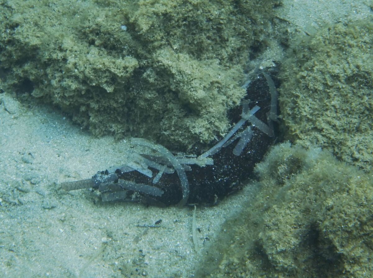Sur les rochers, on observe çà et là des éponges jaunes et des éponges noires, alors que de nombreuses holothuries sont posées sur le sable. Malgré le peu d’herbiers, les fonds sont visités par de nombreux poissons. Les girelles paon, les saupes de Méditerranée, et plusieurs espèces de sars sont notamment très communes.