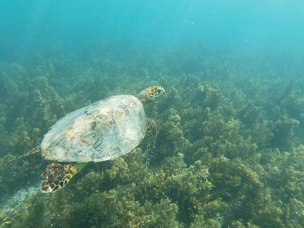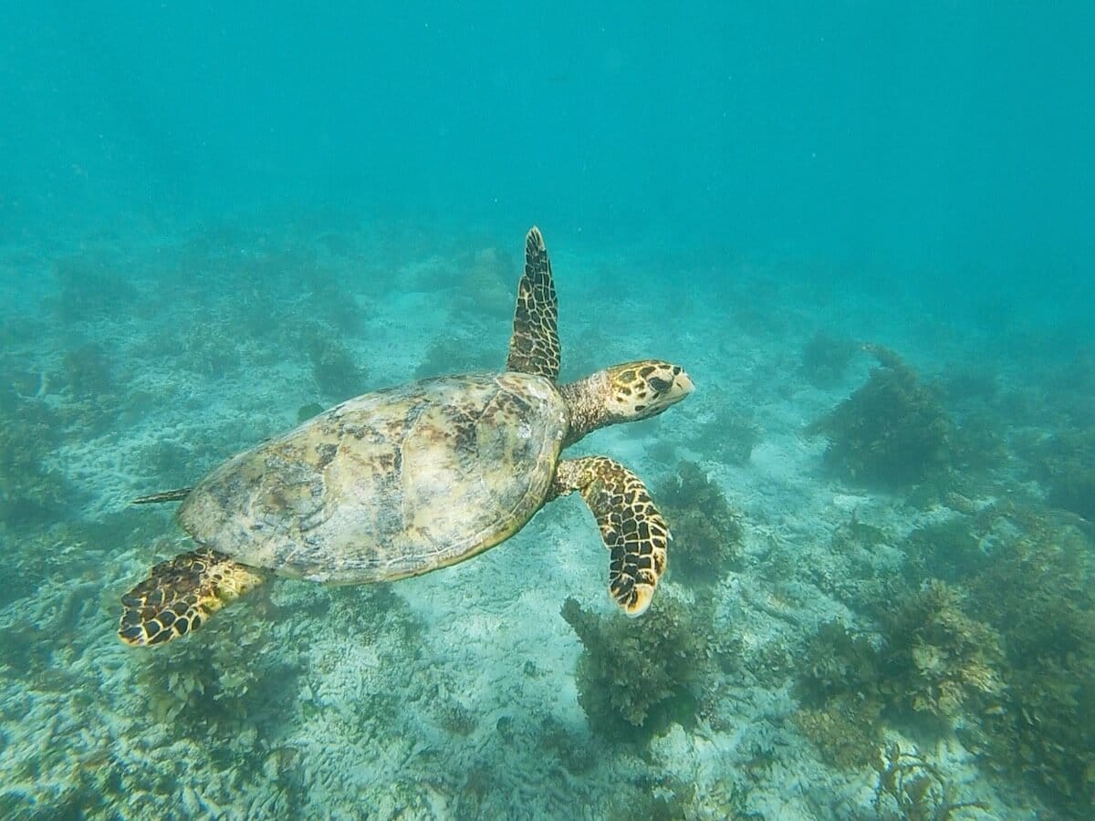 Comme de nombreux autres spots des Seychelles, Anse Boudin est visitée par des tortues imbriquées, que l’on peut croiser en train de nager paisiblement au-dessus des herbiers et des zones de débris coralliens.