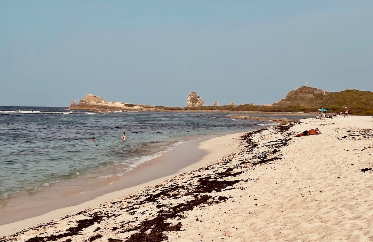L’Anse des Salines est la dernière plage avant la Pointe des Châteaux, qui marque le bout de la Grande Terre. Si vous visitez ce site iconique de Guadeloupe, profitez-en pour explorer le petit lagon de l’Anse des Salines. Calme et peu profond, il abrite une vie sous-marine intéressante, avec notamment de nombreux poissons de récif. De plus, le cadre est superbe, avec la Désirade et les pics rocheux acérés de la Pointe des Châteaux en arrière-plan.