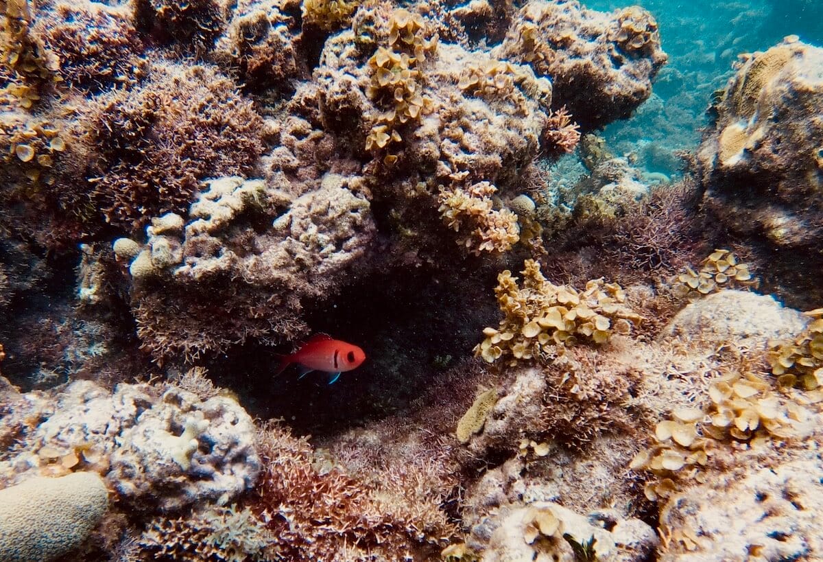 On peut faire du snorkeling dans tout le « lagon », entre la plage et jusqu’a la barrière de corail, qui sont distantes de 100 à 150m selon les endroits. La profondeur est d’environ 1 à 3m, ce qui rend ce spot assez adapté aux débutants quand il n’y a pas de courant.