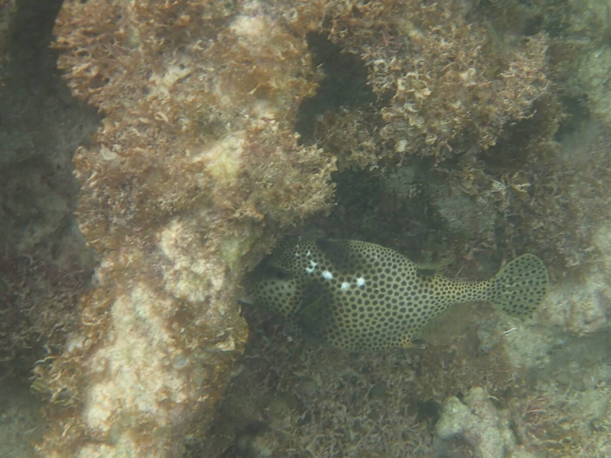 Vous croiserez sur ce spot les espèces de poissons typiques des petits lagons de Guadeloupe: bancs de carangues comades, poissons-papillons, sergents-majors ou le sympathique poisson-coffre zinga comptent parmi les espèces les plus faciles à observer.