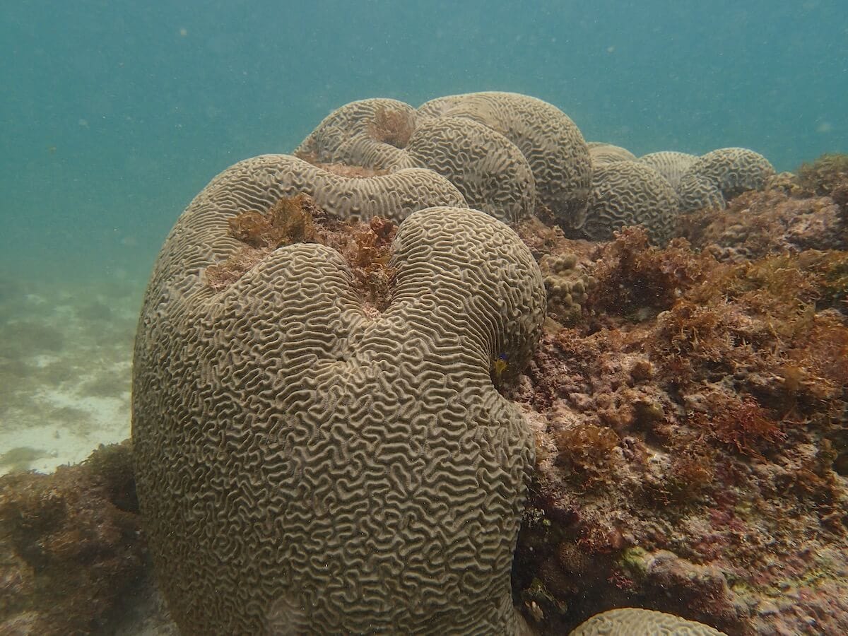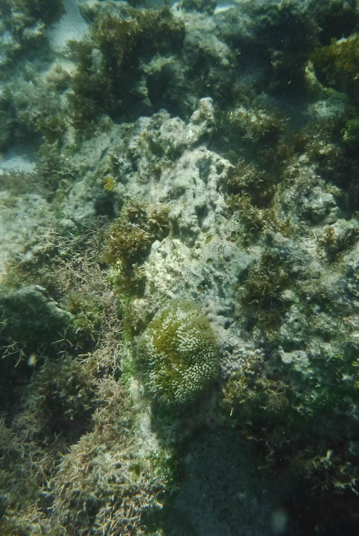Les fonds, bien qu’à dominante corallienne, sont plutôt décevants (↕1-3m), car recouverts en partie d’algues vertes et rouges peu esthétiques. Quelques beaux coraux (coraux mous, cerveau, porites) se distinguent tout de même.