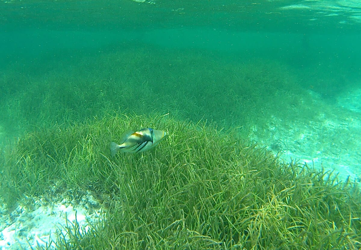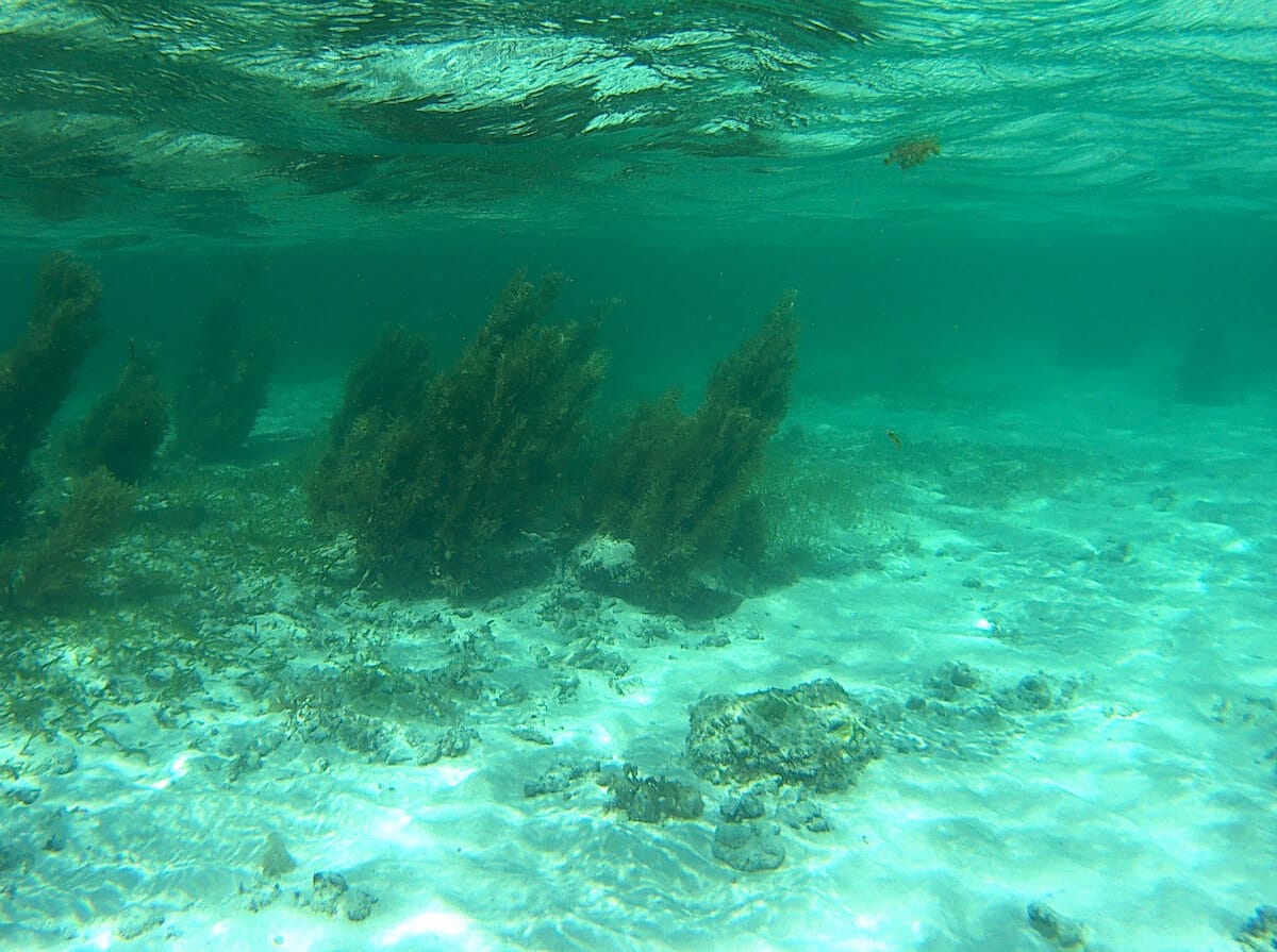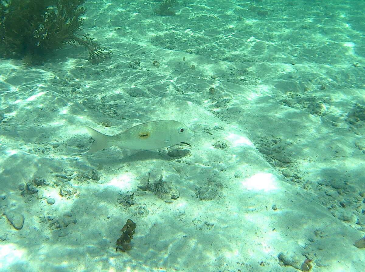 Les fonds alternent entre zones de sable, algues et rochers. Certains passages sont peu profonds et vous devrez parfois marcher pour explorer certaines zones.