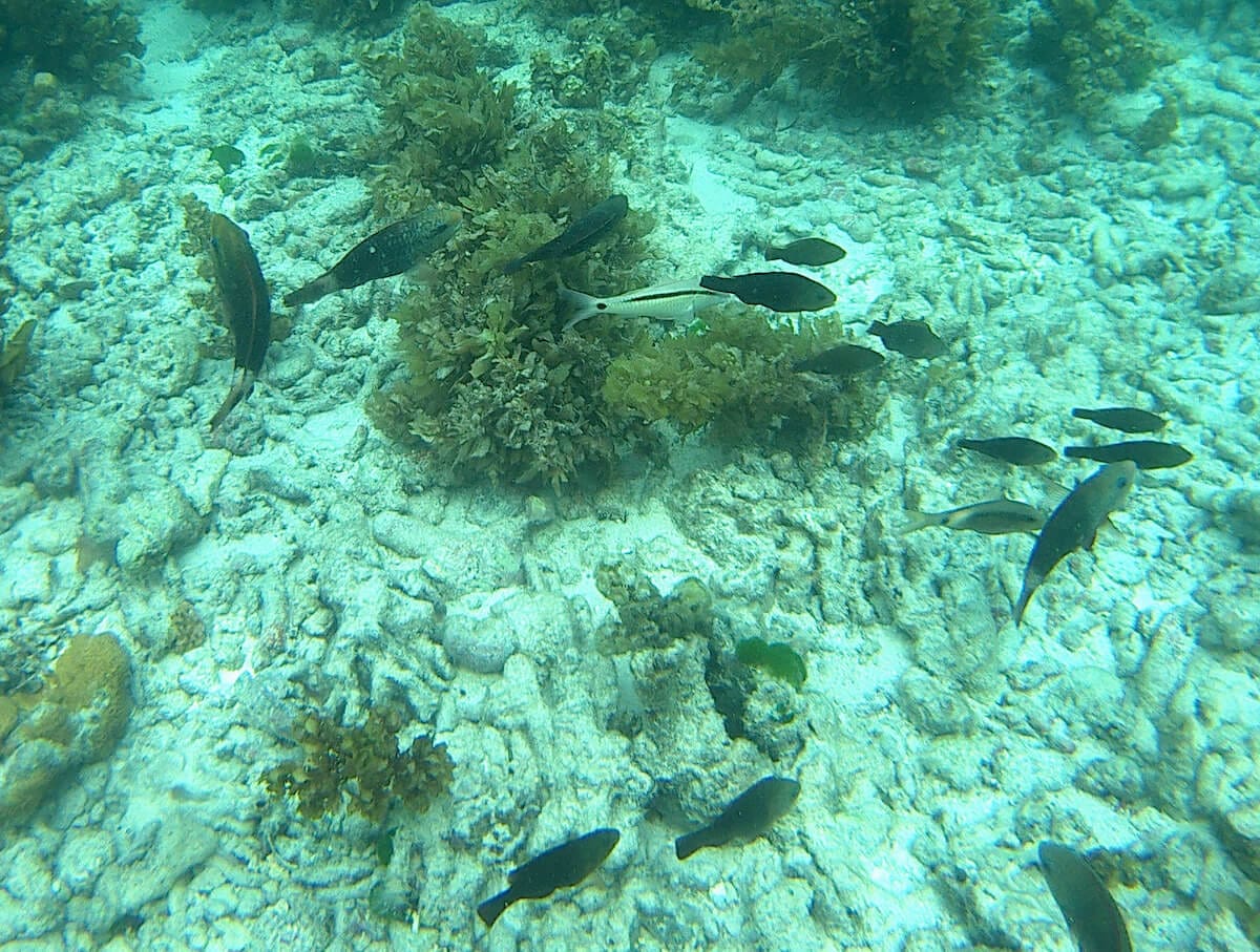 Vous ne verrez pas ici d’énormes bancs contrairement à d’autres endroits aux Seychelles, mais la variété de poissons est incroyable. Les poissons-anges à demi-cercle et les poissons-anges empereurs sont fréquemment observés sur le récif. Vous aurez également la chance d’apercevoir poissons-papillons côtelés, raton-laveur et cocher, ainsi que des Idoles des Maures.