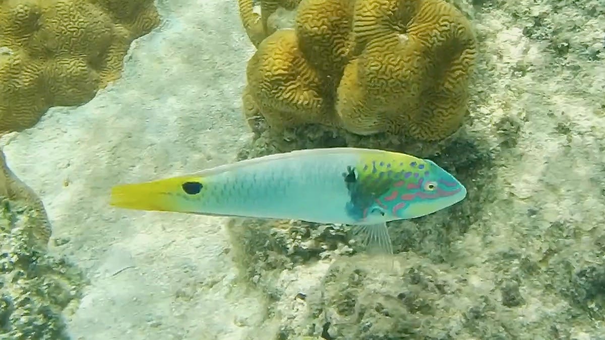 Près de la plage, les fonds sont sableux, mais on peut voir de nombreux poissons (notamment des carangues bleues et des saupes grises), qui semblent être parfois nourris par les baigneurs. Pour rejoindre les zones coralliennes, éloignez-vous de la plage.