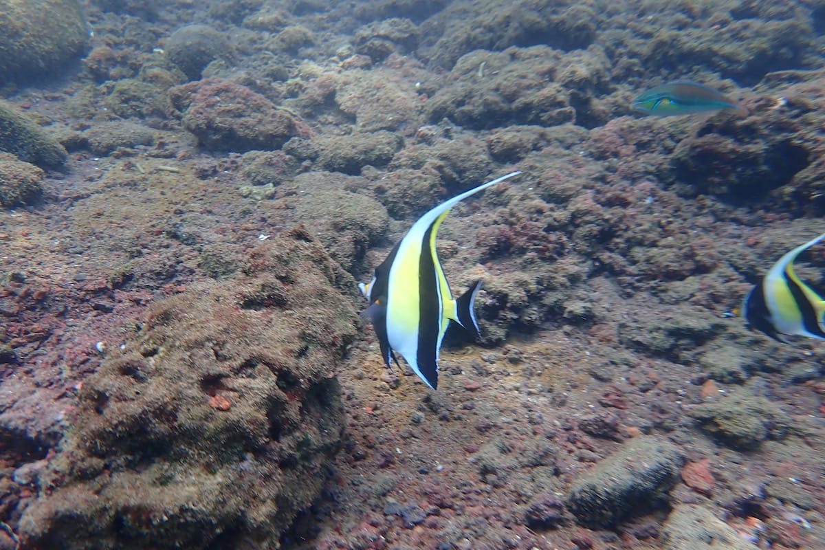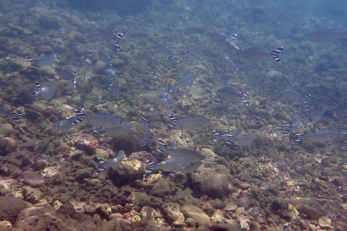 On peut faire du snorkeling dans tout le bassin, dans lequel le paysage sous-marin est rocailleux, entrecoupé çà et là de rares petites boutures de corail. C’est surtout autour des rochers qui bordent le bassin que se concentre la vie sous-marine. On y observe des bancs de poissons-pavillons rayés, de nombreux grégoires d’ébène, des blennies et des girelles arc-en-ciel.
