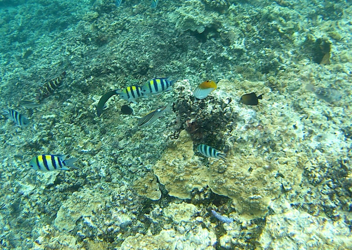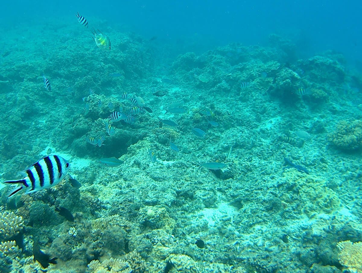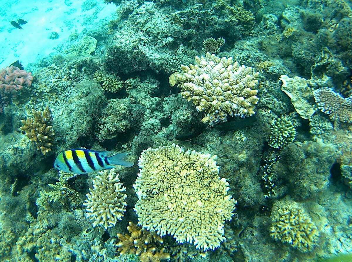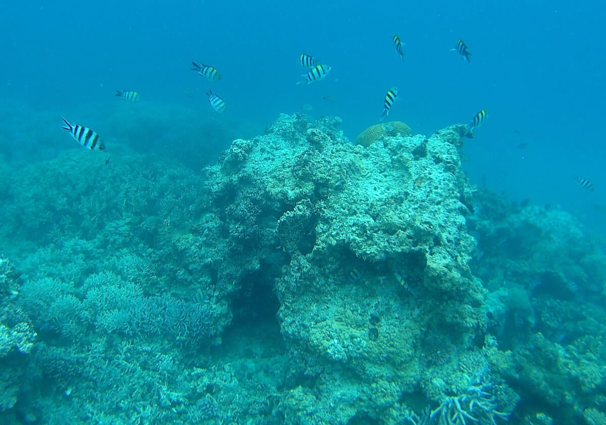 C’est naturellement autour des zones en bonne santé que l’on observe le plus de poissons. Les variétés de coraux observées sur place comprennent le corail branchu, le corail cerveau, et le corail chou-fleur.