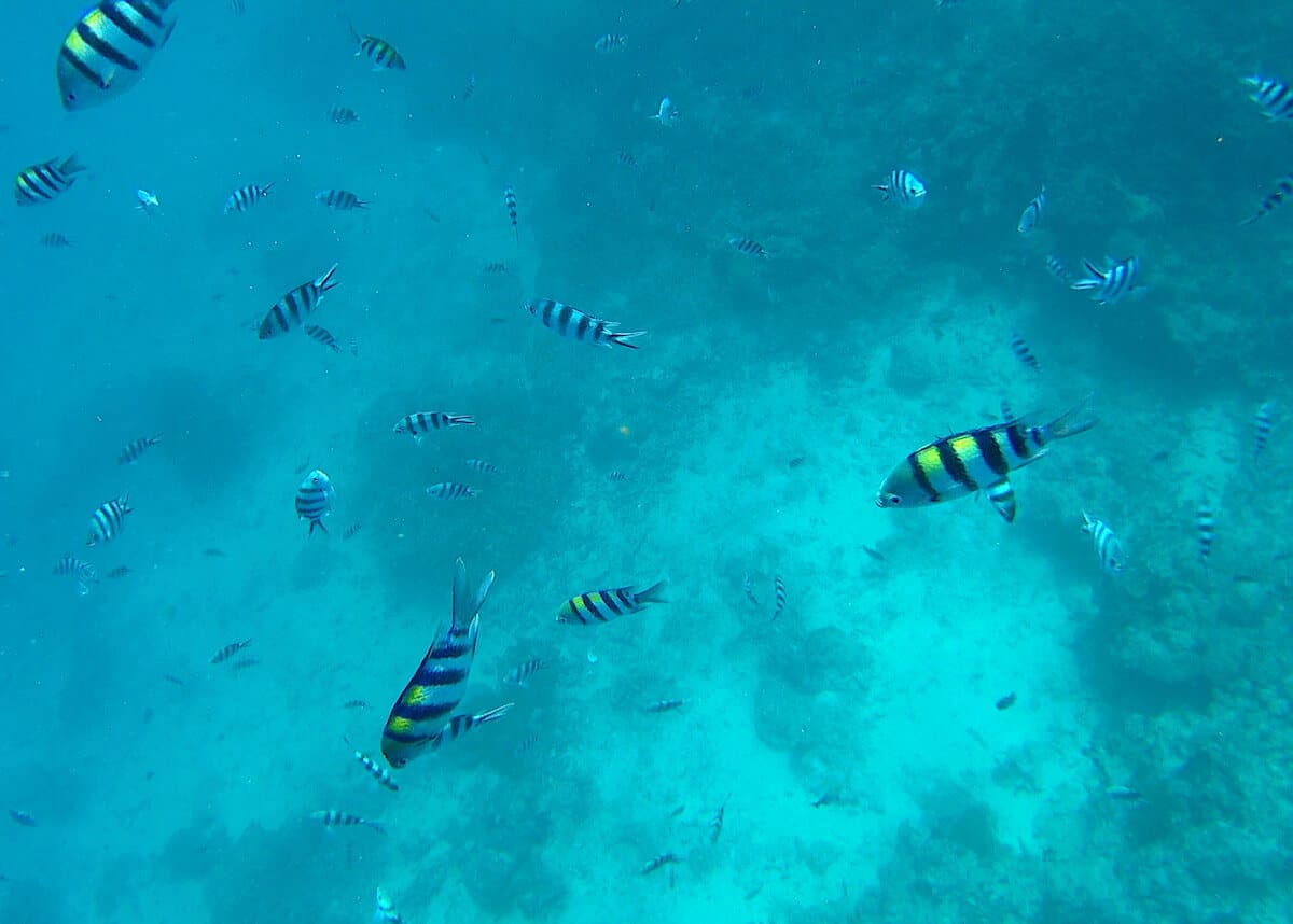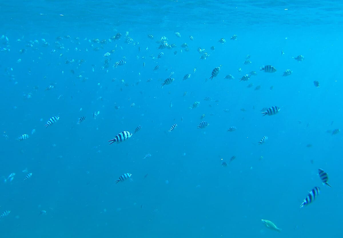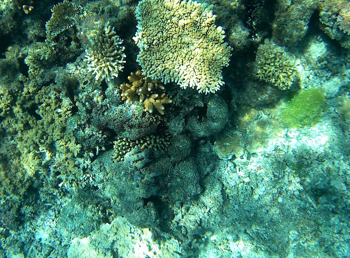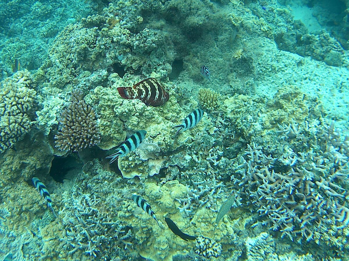 C’est naturellement autour des zones en bonne santé que l’on observe le plus de poissons. Les variétés de coraux observées sur place comprennent le corail branchu, le corail cerveau, et le corail chou-fleur.
