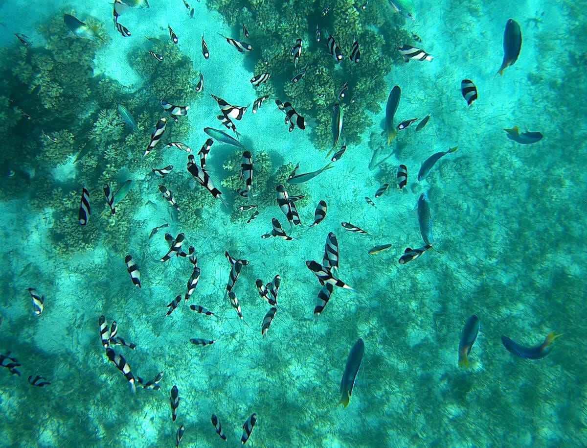 Autour du récif, vous apercevrez certainement des papillons cocher et des papillons à tache ovale, des demoiselles des cornes de cerf, des poissons chirurgiens clown, des chirurgiens bagnards et des poissons-perroquets.