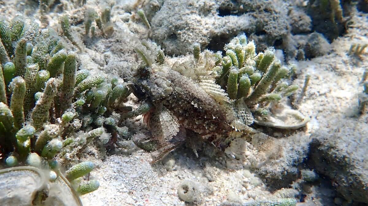 A la différence du spot voisin de Cabilao – Bamboo Reef, le spot de Cabilao Lighthouse présente un platier presque intégralement recouvert d’herbiers. Si vous prenez le temps de les explorer, vous y remarquerez une multitude de petites espèces fascinantes: différentes espèces de poissons-scorpions, des nudibranches, des étoiles de mer, ou encore des crevettes queue-de-paon vivant en symbiose avec des anémones adhésives.