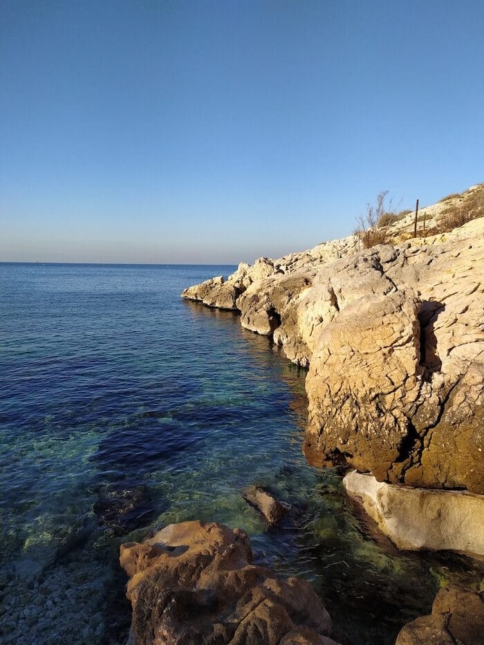 Il y a quelques places tout le long de l’impasse et juste à côté du restaurant Les Tamaris. Vous pouvez aussi vous garer sur le parking en bord de route (lien Google Maps), où se trouve un panneau « Saména ». La calanque est aussi accessible en transports en commun: le point de desserte le plus proche est l’arrêt de bus « Saména » (localisation ici), qui se trouve à environ 300m de marche du spot.