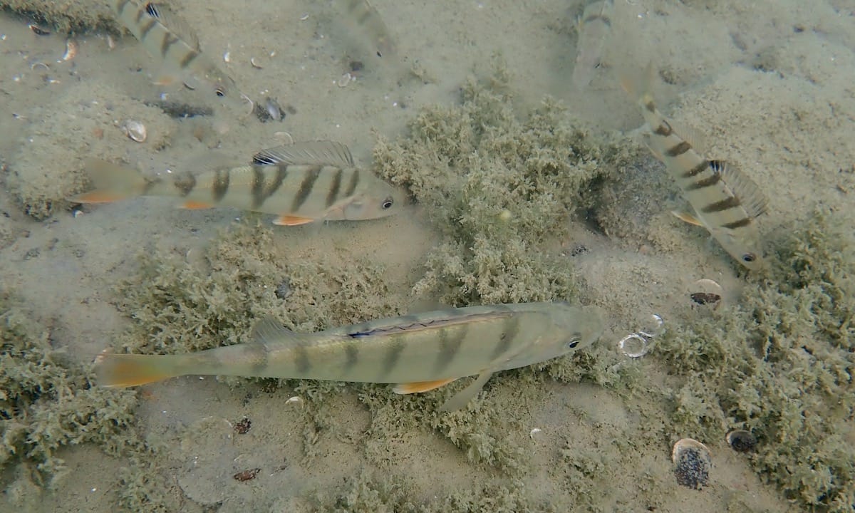 Sur ce spot, on peut découvrir des fonds variés, notamment des rochers, des herbiers (voir carte), des roselières, et des étendues de sable et de vase. Un peu partout, on voit facilement des perches, l’un des poissons lacustres les plus communs. Le blennie fluviatile, qui vit posé sur les fonds, apprécie quant à lui les zones rocheuses, où il peut se cacher en cas de danger.