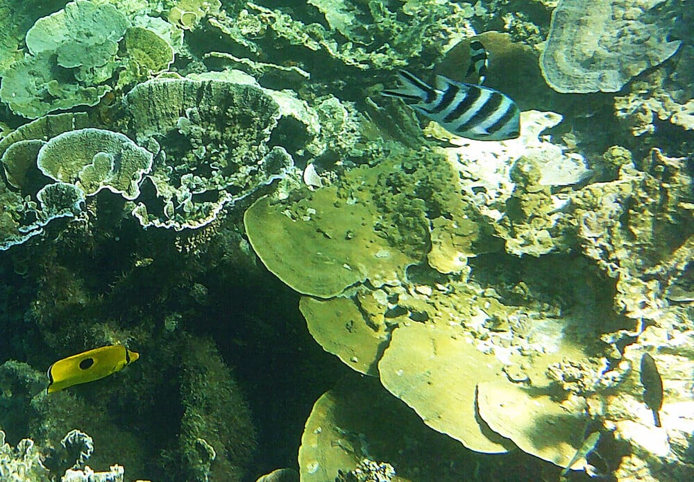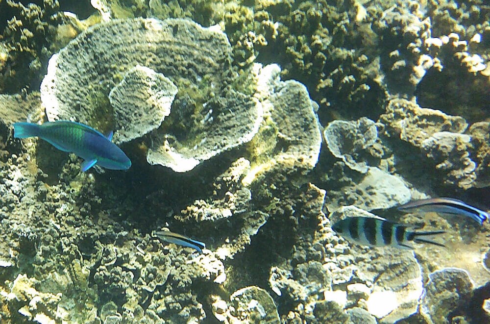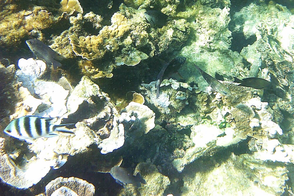 La plupart des récifs coralliens de l’Île Maurice sont fortement dégradés, et celui de Cap Malheureux n’échappe pas à la règle. Peu de zones sont intactes, et vous palmerez surtout au-dessus de fonds abîmés, où cohabitent coraux vivants et coraux blanchis ou brisés.
