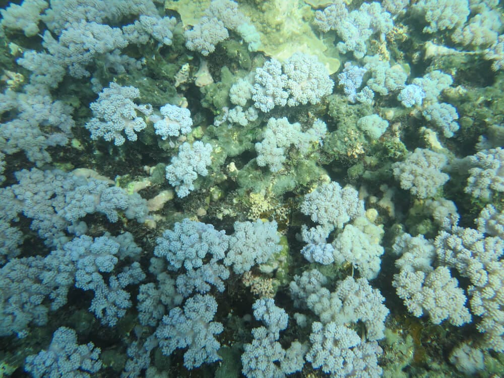 Les coraux les plus communs sur le récif sont le corail foliacé, le corail massif poreux, le corail champignon, et plusieurs espèces de coraux mous.
