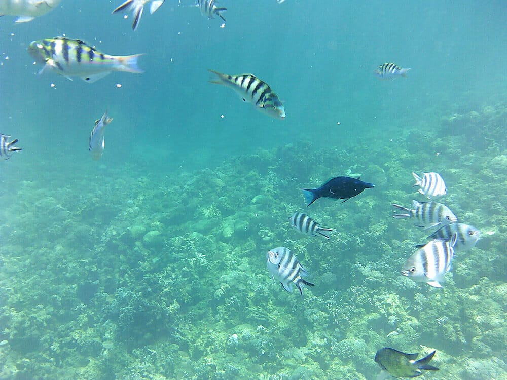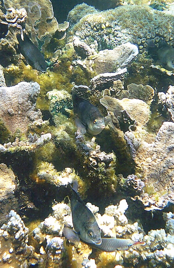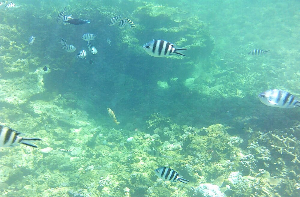 Même si les fonds sont décevants, ils abritent de nombreux poissons, comme les poissons-papillons, les poissons-perroquets, et une grande variété de demoiselles. Deux espèces de labres nettoyeurs, le labre nettoyeur commun et le labre nettoyeur bicolore, peuvent aussi être observés en train de débarrasser d’autres poissons de leurs parasites.