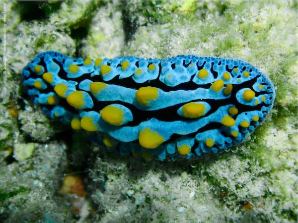 En parcourant le récif, vous pourrez aussi trouver des étoiles de mer bleues, des oursins-crayons et des phyllidies verruqueuses, un nudibranche coloré.