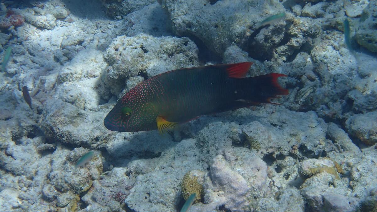 En revanche, une extraordinaire diversité de poissons, tous plus colorés les uns que les autres, vit sur les récifs de l’île. Parmi les plus plus beaux, le gaterin oriental, le poisson-ange duc, le poisson-ange empereur, le mérou croissant jaune ou encore le poisson-papillon de Meyer.