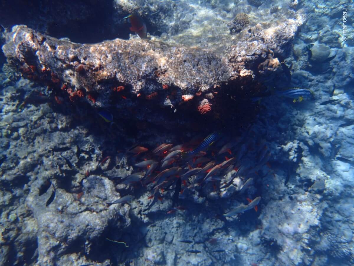 Les spots de snorkeling sont situés dans des environnements naturels, et leur aspect peut varier significativement en raison de la météo, des saisons, des courants, des activités humaines ou d’évènements climatiques exceptionnels (tempêtes, cyclones, hausse de la température de l’eau…). Ces éléments peuvent entrainer une rapide altération des fonds marins (coraux blanchis ou brisés, invasions d’algues), une mauvaise visibilité sous l’eau, ou encore une diminution du nombre d’espèces présentes sur le spot. Nous faisons tout notre possible pour que les informations contenues sur cette page soient exactes et à jour, mais nous ne pouvons garantir que la visibilité ou l’aspect des fonds décrits sur cette page sera identique le jour de votre visite. Si vous avez récemment fait du snorkeling sur ce spot et que vous avez remarqué des changements, contactez-nous.