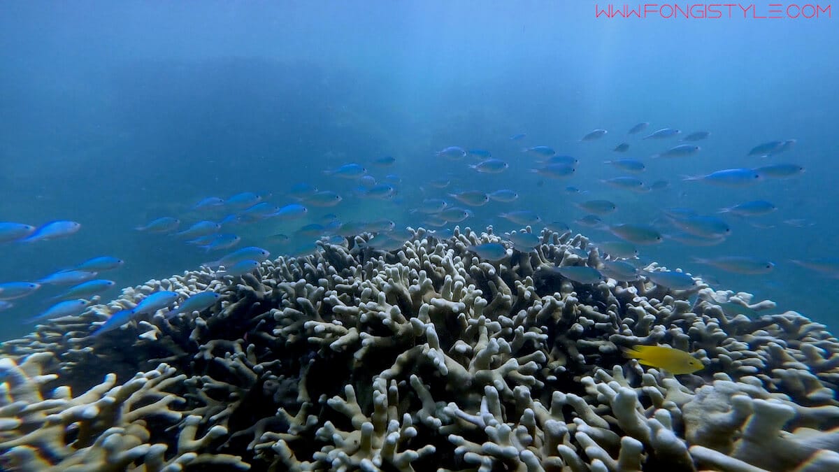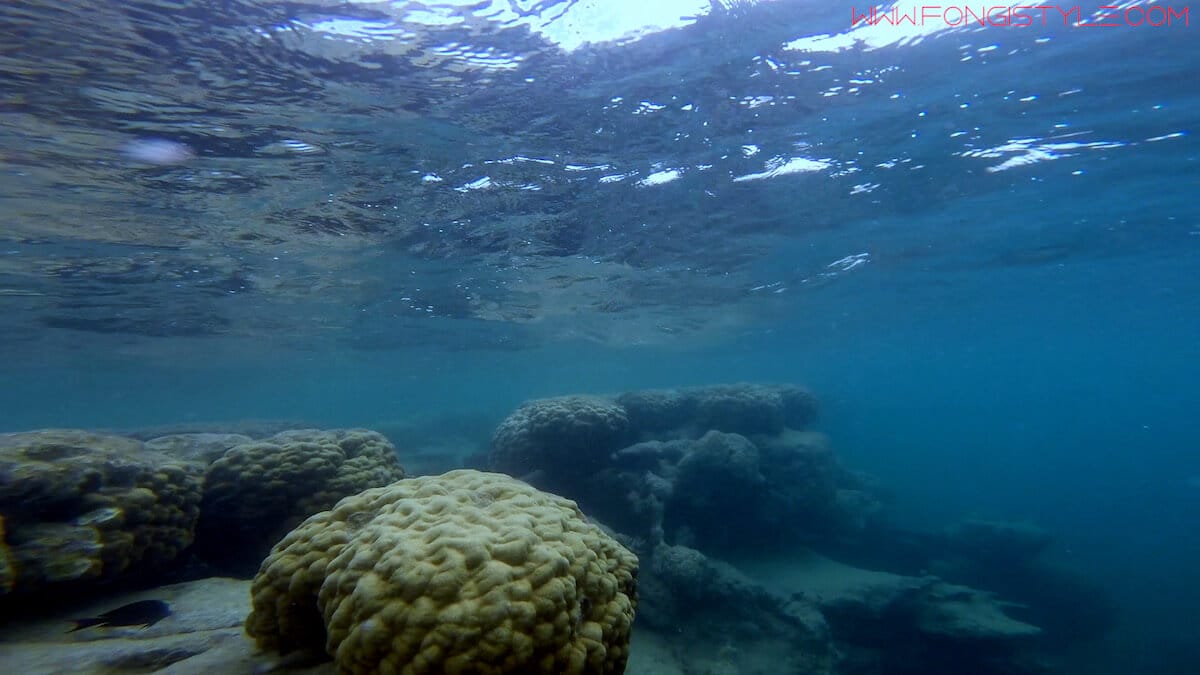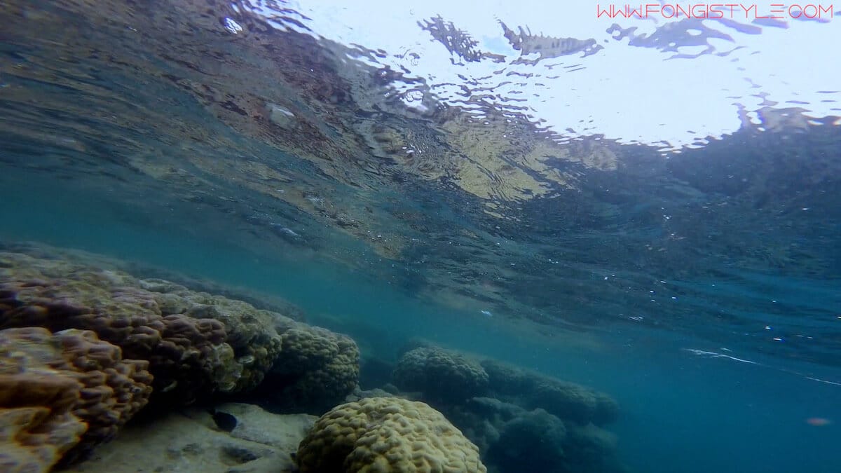 Si vous explorez ce spot par vous-même depuis le bord, restez sur les premières centaines de mètres de faille. Si vous constatez que des courants vous entraînent vers l’extérieur du lagon, rejoignez le bord de la faille et sortez de l’eau.