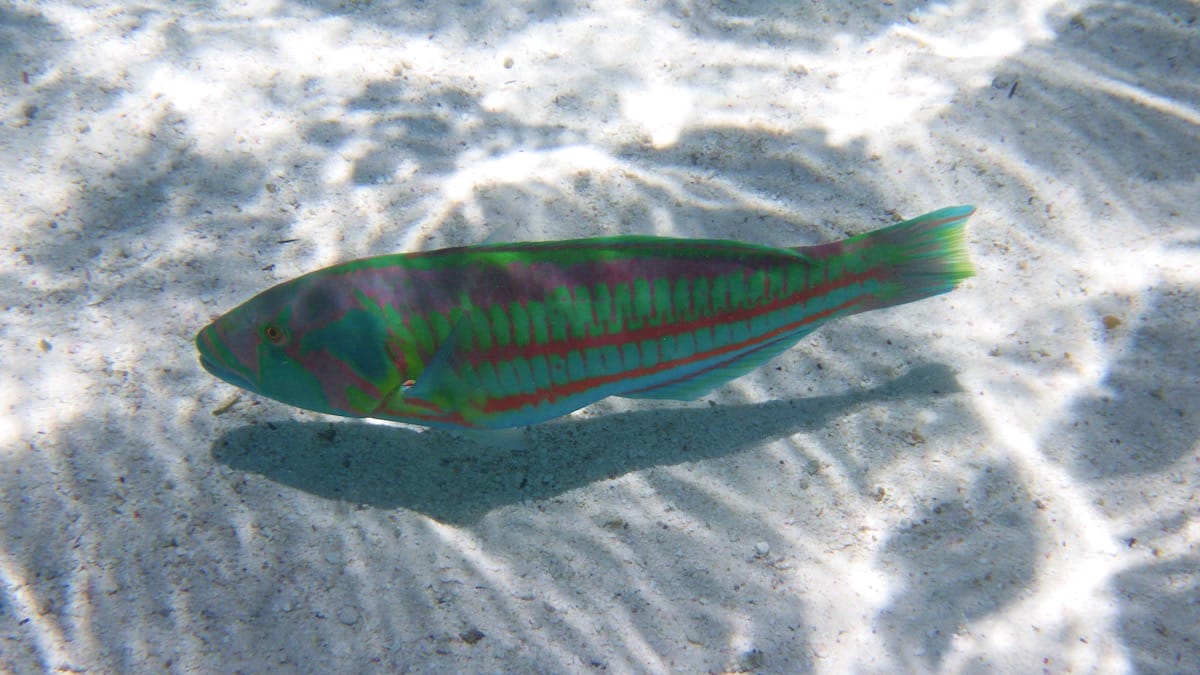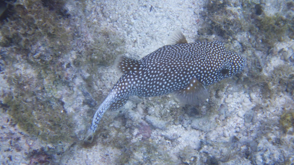 Sur ce spot, la profondeur varie entre 0,5 et 3m. C’est la hauteur d’eau idéale pour observer la vie sous-marine depuis la surface. Dans la passe, les fonds alternent entre massifs coralliens (plus ou moins en bon état) et langues de sable.