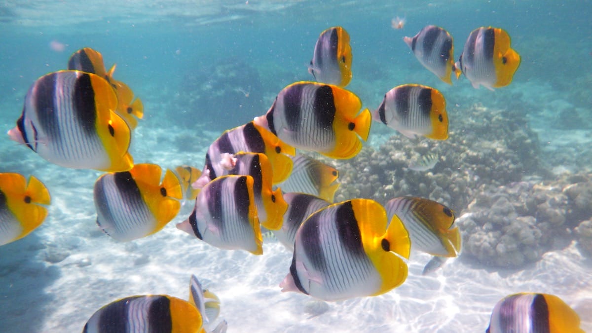 Une belle diversité de poissons vit dans la passe, notamment des poissons-anges, des balistes, de nombreux labres et des poissons-ballons. A certains endroits, vous serez rapidement encerclé par des bancs de poissons-papillons d’Ulietea, semble-t-il habitués à être nourris par certains guides.