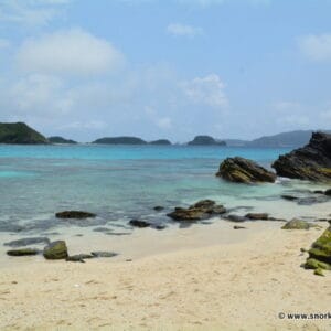 Si l’on ne devait vous conseiller qu’un seul spot dans les îles Kerama, ce serait sans doute celui-ci. Autour des zones coralliennes qui bordent l’extrémité ouest de cette plage paradisiaque, les fonds sont exceptionnels : des centaines de chromis cachées dans des colonies d’acropora, des poissons-clowns à foison, de superbes balistes clowns abrités à l’ombre des rochers, et quelques cobras de mer glissant au dessus des fonds à la recherche de leur proie du jour… Le spectacle est sans fin. Vous pouvez aisément, en une journée sur l’île, combiner cette exploration avec celle du spot de Ama Beach, situé à environ 3 kilomètres de là.