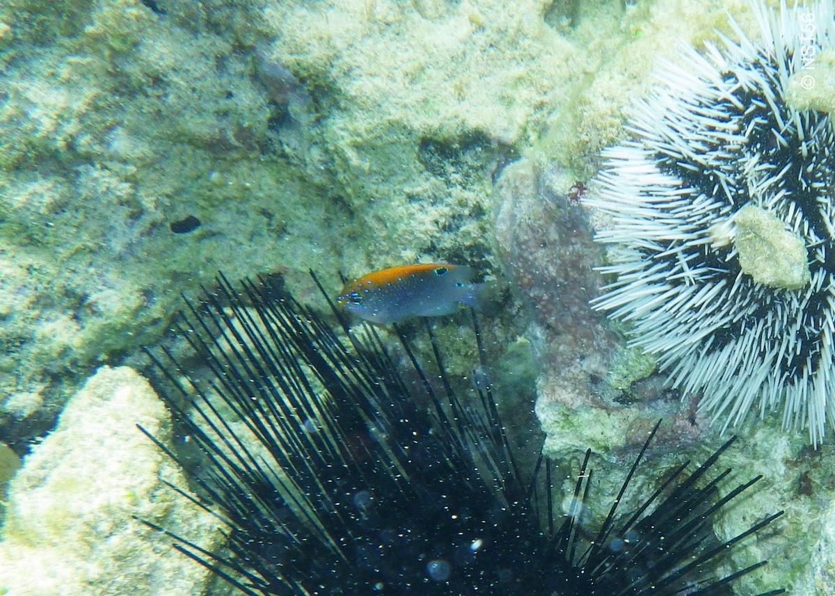 Sur le récif de droite, vous découvrirez tout d’abord un récif peu profond, avec de nombreux trous et surplombs, entrecoupé de zones de sable. Même si cette zone est pauvre en coraux, on peut y voir de nombreux poissons comme des girelles, des sergents majors, des gorettes et des barbarins.