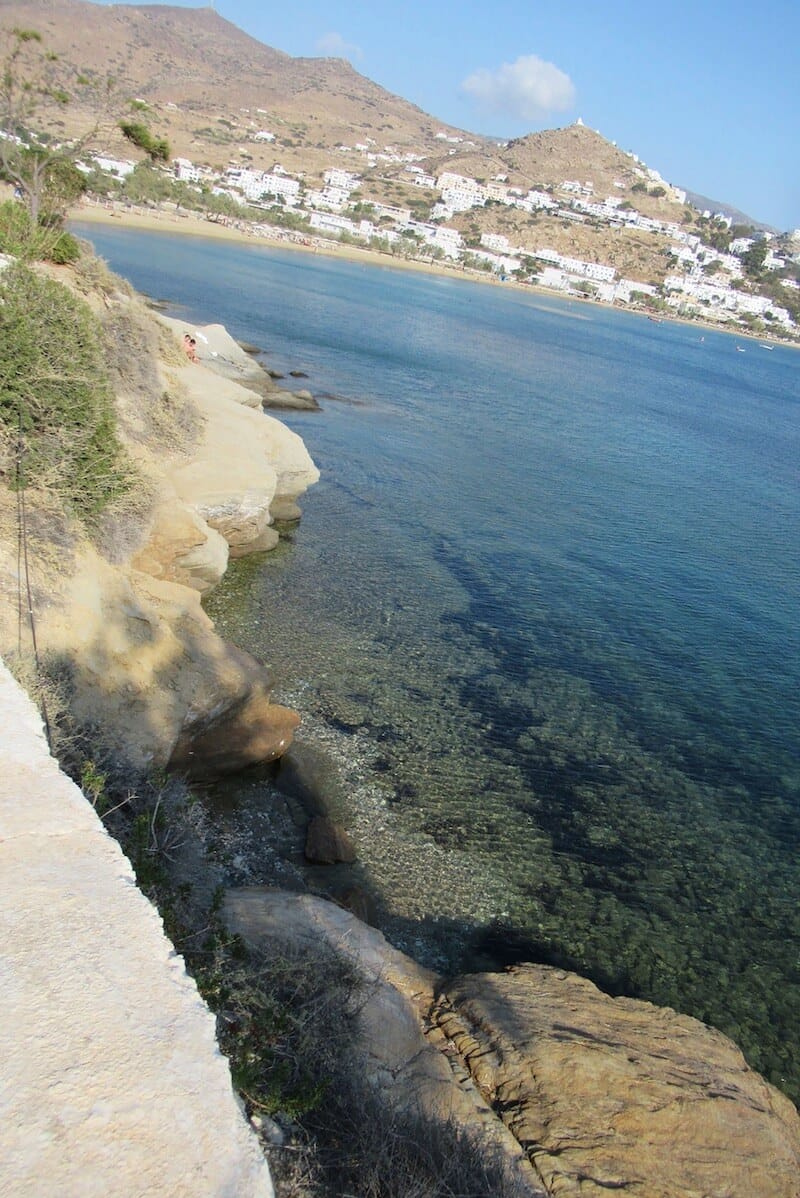 La Baie de Íos, avec ses plages, son village et son port, est presque un passage obligé si vous visitez l’île. Si vous y séjournez, n’hésitez pas à aller jeter un œil aux fonds marin de la plage de Gialos, dans le creux nord de la baie. Si les fonds, couverts de sable et d’herbiers, sont peu spectaculaires, on observe à faible profondeur de nombreux poissons, comme les palomines, les marbrés et les girelles.
