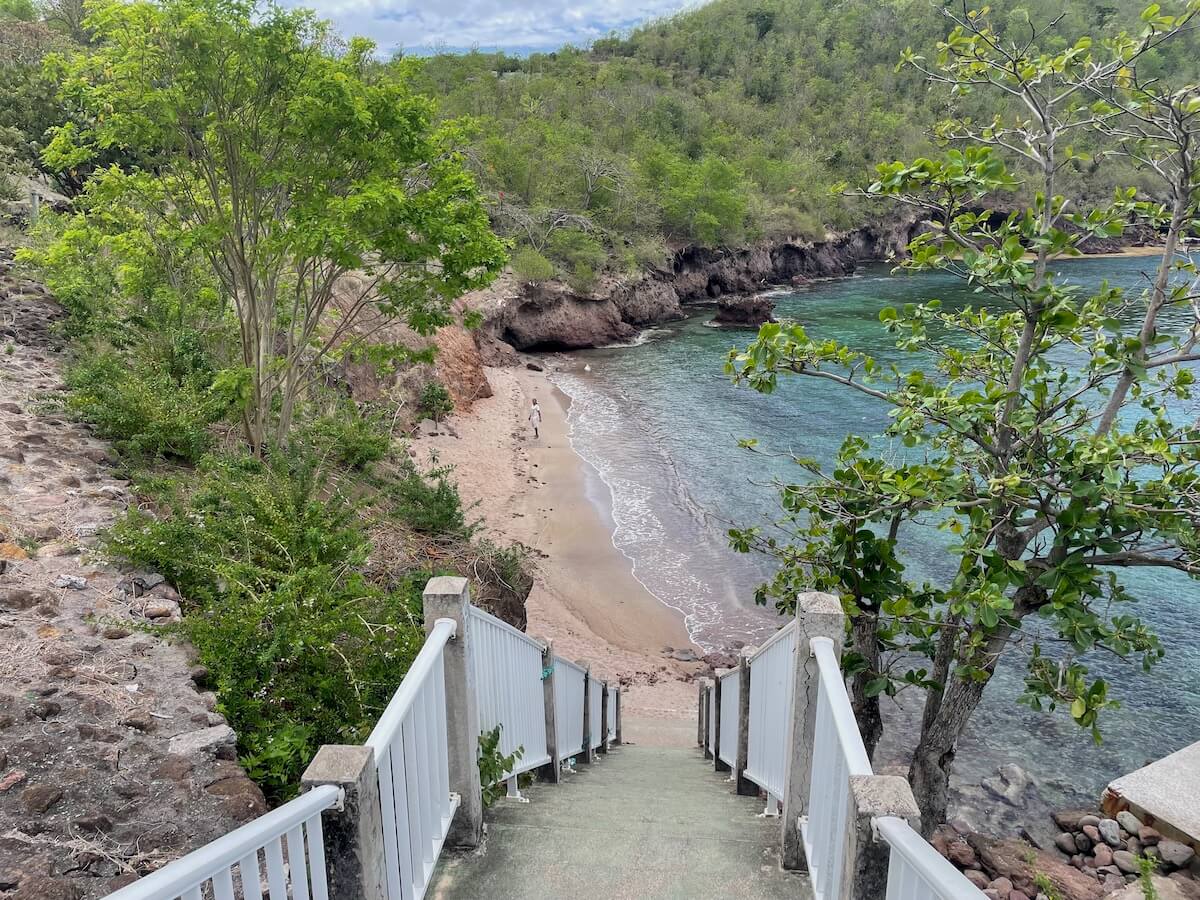 Grande Baie est située sur la côte est de Terre-de-Bas, dans l’archipel des Saintes. L’île est desservie quotidiennement en bateau depuis Trois-Rivières (Basse Terre), mais aussi depuis l’île voisine de Terre-de-Haut, la plus visitée des Saintes.