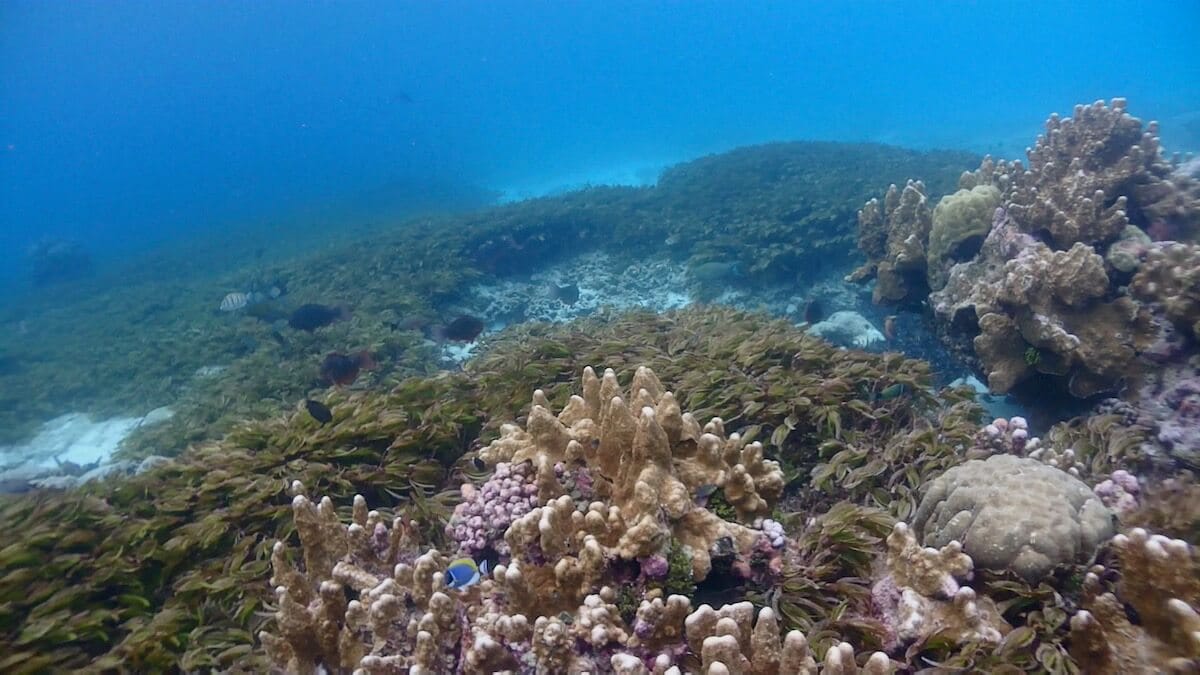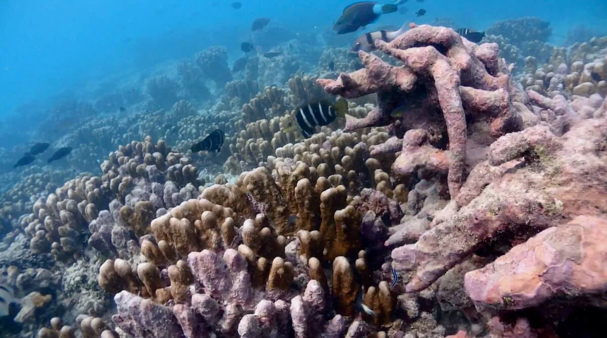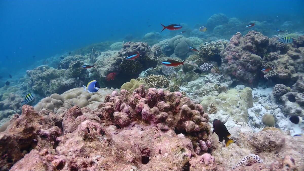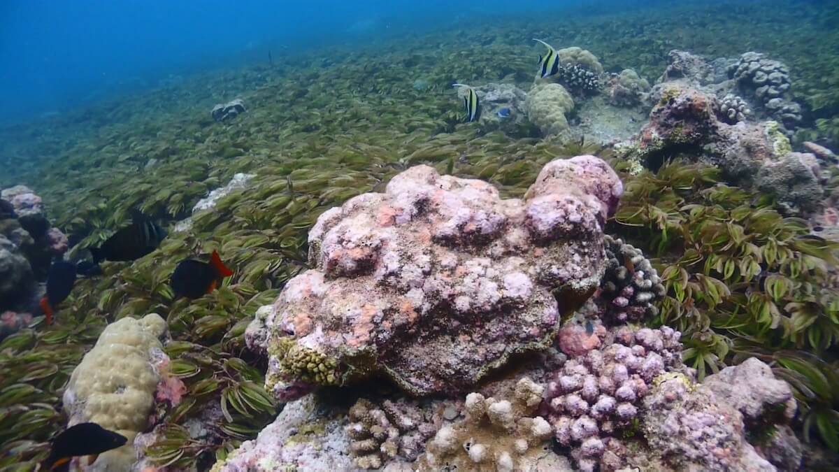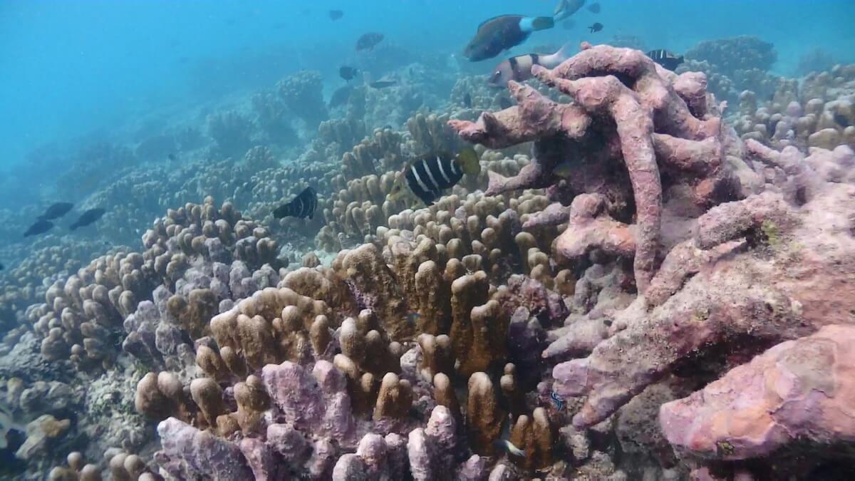 Sur ce spot, les coraux sont dans un état moyen en raison de récents épisodes de blanchissement. On trouve quand même de nombreuses patates en bonne santé, principalement de corail massif poreux et de corail digité.
