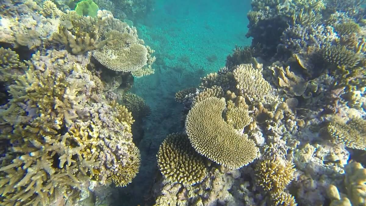 Le récif, composé de dizaines d’espèces de coraux durs (principalement des Acropora) est globalement bien préservé. Autour, on peut observer de nombreux poissons typiques des récifs coralliens calédoniens: demoiselles, poissons-papillons, poissons-clowns, et d’innombrables autres espèces.