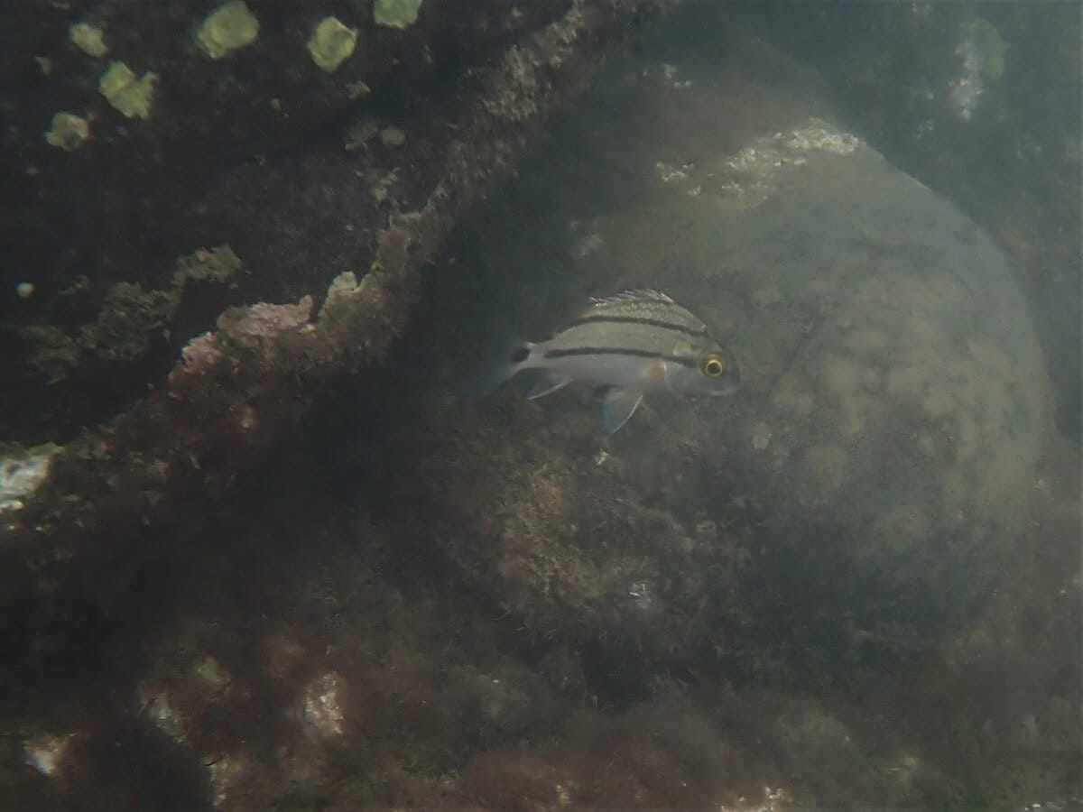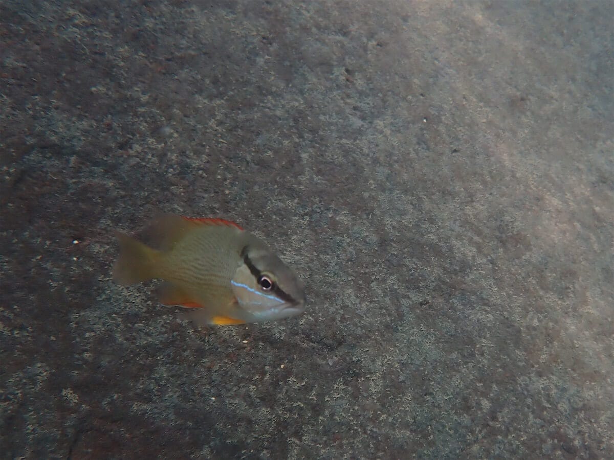 On rencontre autour des rochers de nombreux poissons, notamment de nombreux vivaneaux chien juvéniles, des saupes petite gueule, et de très jolis lippus rondeau (adultes et juvéniles, aux motifs très différents).