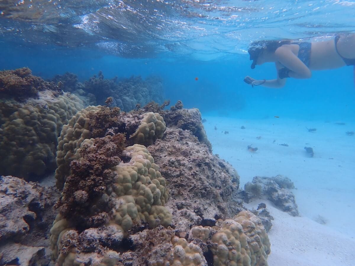 Le courant va de la gauche vers la droite lorsque vous êtes face à l’océan. Vous pouvez faire du snorkeling dans toute la zone corallienne, mais revenez vers la plage dès que vous arrivez au niveau des zones de sable.