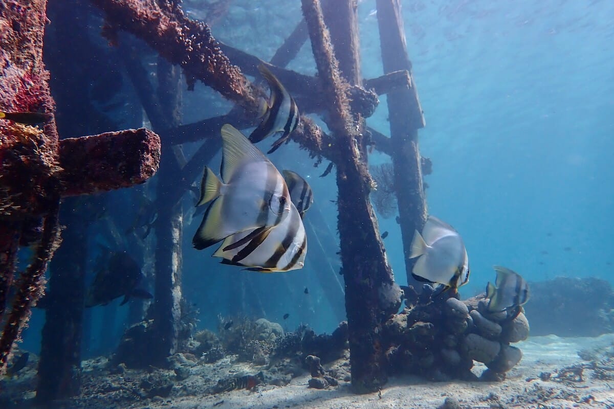Un autre point d’intérêt est le ponton, dont les piliers attirent de gros poissons comme le vivaneau encrier et le platax doré. Soyez toutefois attentifs aux bateaux qui vont et viennent à certains moments de la journée.