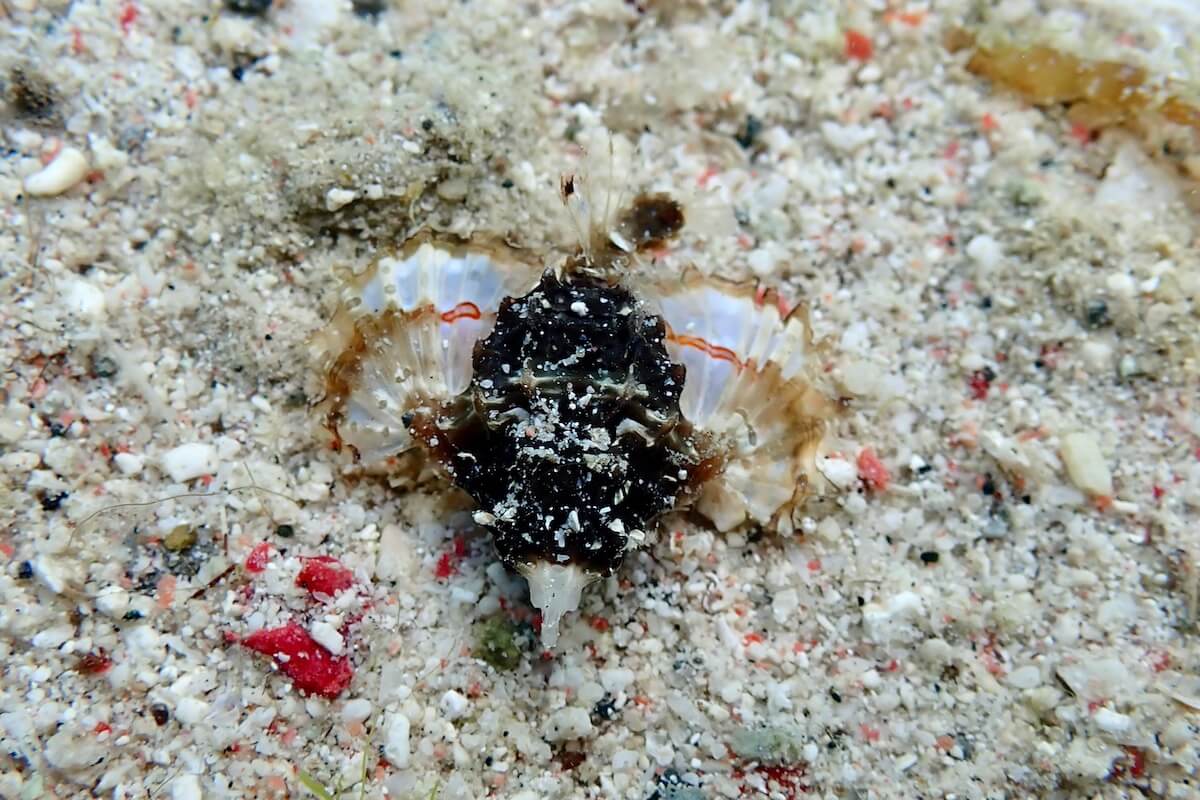 Autre zone intéressante, la petite parcelle de mangrove qui se trouve tout au nord du spot. Cette forêt de racines crée un environnement idéal pour les espèces juvéniles de toutes sortes, et vous pourriez également y rencontrer le joli apogon pyjama.