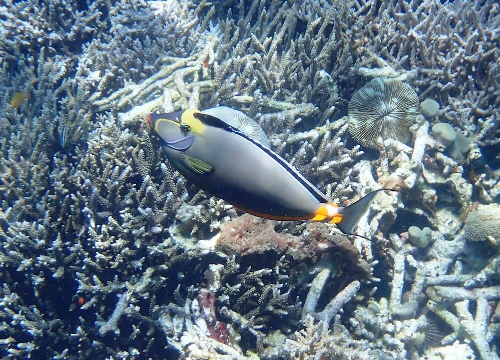 Les spots de snorkeling sont situés dans des environnements naturels, et leur aspect peut varier significativement en raison de la météo, des saisons, des courants, des activités humaines ou d’évènements climatiques exceptionnels (tempêtes, cyclones, hausse de la température de l’eau…). Ces éléments peuvent entrainer une rapide altération des fonds marins (coraux blanchis ou brisés, invasions d’algues), une mauvaise visibilité sous l’eau, ou encore une diminution du nombre d’espèces présentes sur le spot. Nous faisons tout notre possible pour que les informations contenues sur cette page soient exactes et à jour, mais nous ne pouvons garantir que la visibilité ou l’aspect des fonds décrits sur cette page sera identique le jour de votre visite. Si vous avez récemment fait du snorkeling sur ce spot et que vous avez remarqué des changements, contactez-nous.